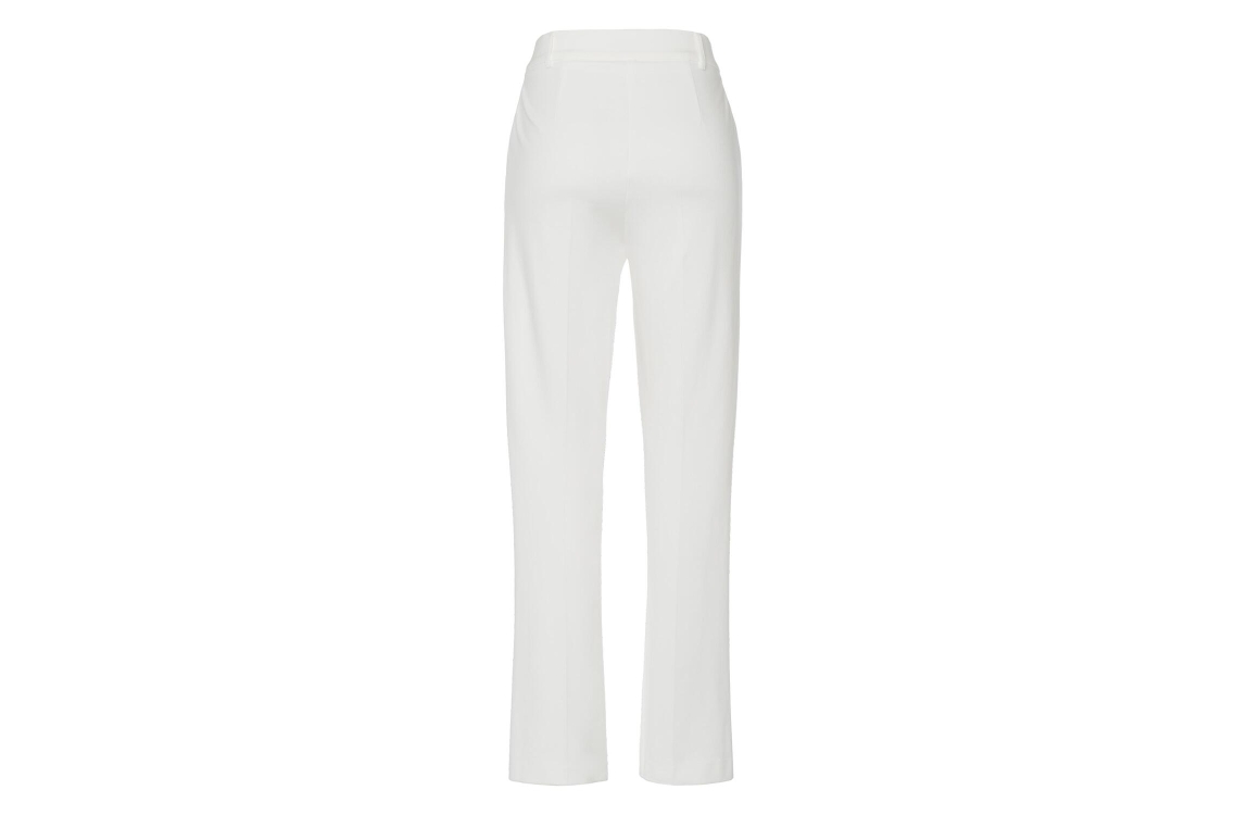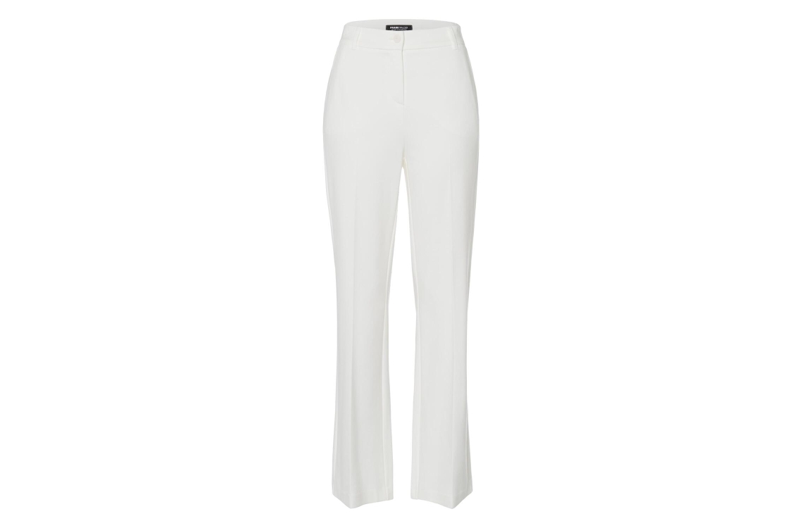 Frank Walder broek S52602605. Dit flared witte model sluit door middel van een knoop en rits afgewerkt met ceintuurlussen.