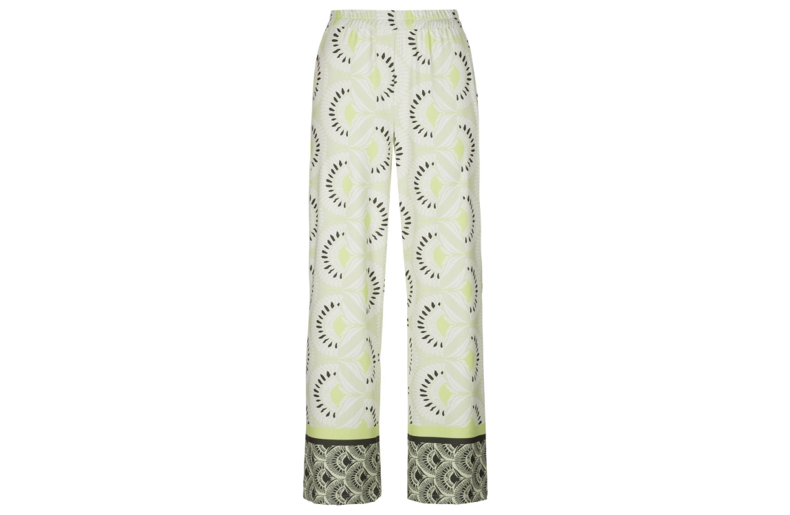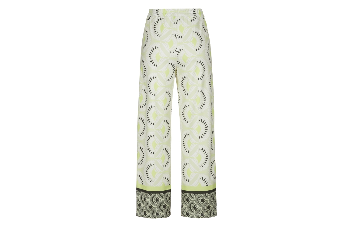 Frank Walder S62Hose 784070 Green print. Dit soepelvallende model sluit door middel van een elastische boord. Deze groene broek van Frank Walder is all-over bewerkt met een print.