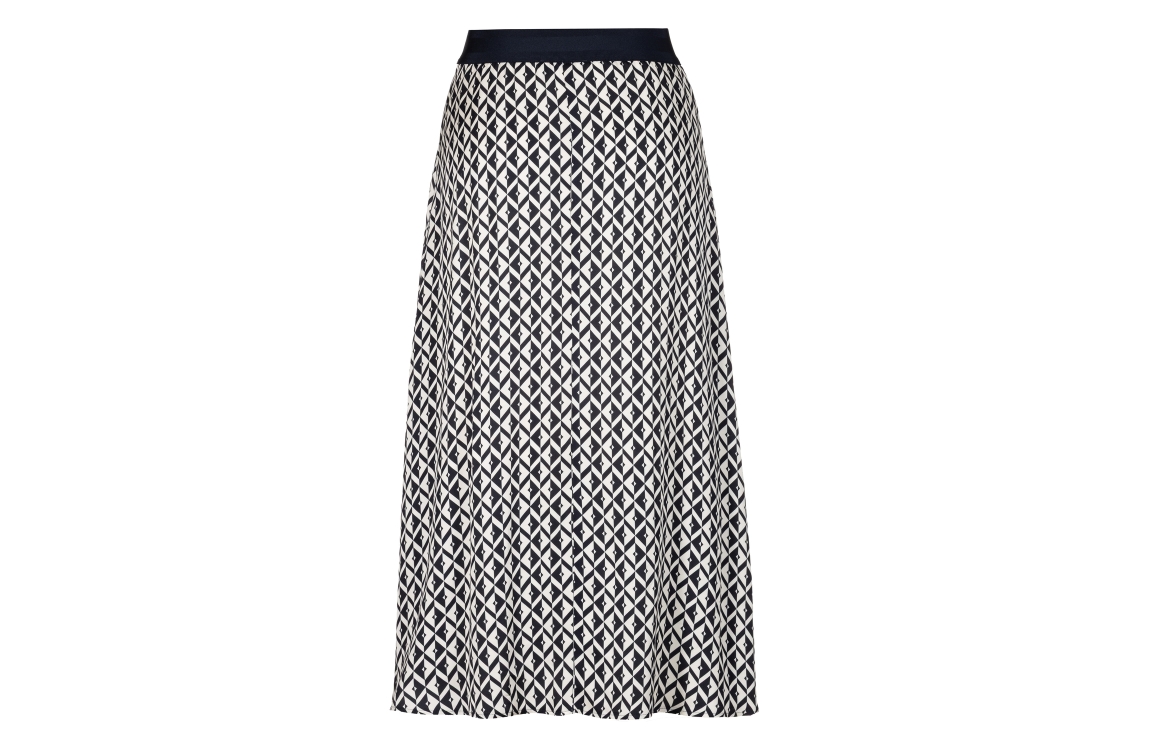Frank Walder S62Rock 942059 Blue print. Dit regular fit model sluit door middel van een elastische boord. Deze witte rok van Frank Walder is uitgevored is een grafisch patroon.