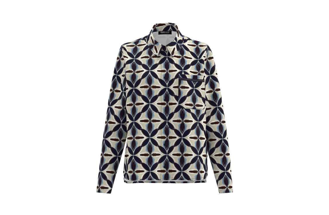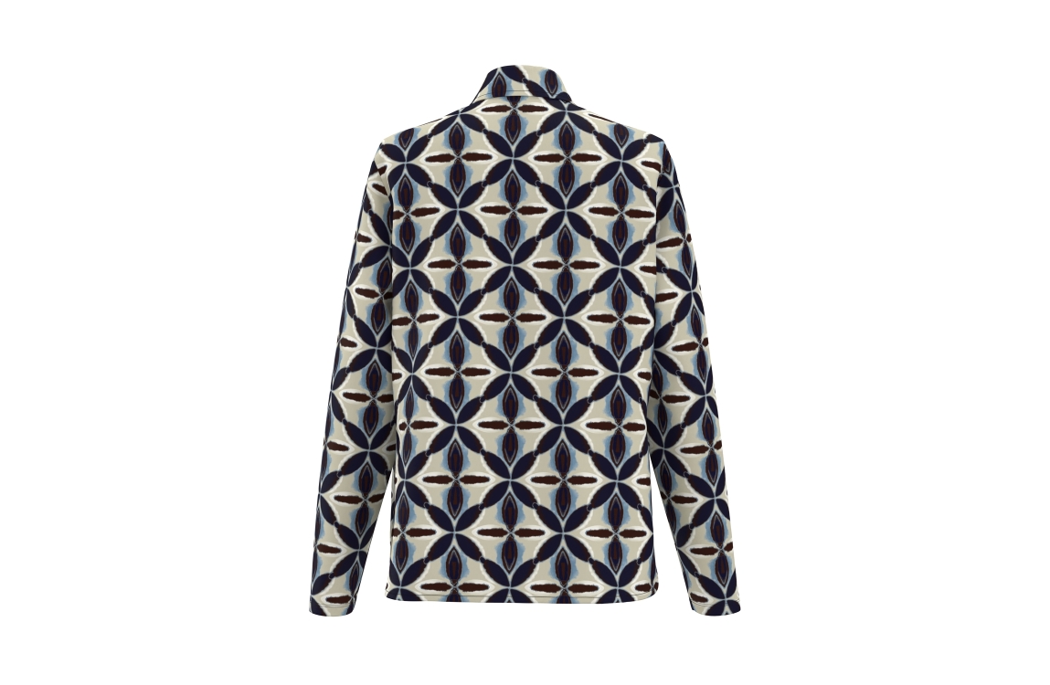 Frank Walder blouse W51621101. Dit rechtvallend model is voorzien van een kraag en heeft lange mouwen. Deze beige blouse van Frank Walder sluit door middel van knopen en is afgewerkt met een borstzak. Dit model is bewerkt met een bruine en blauwe grafische print.