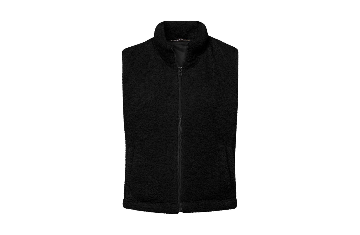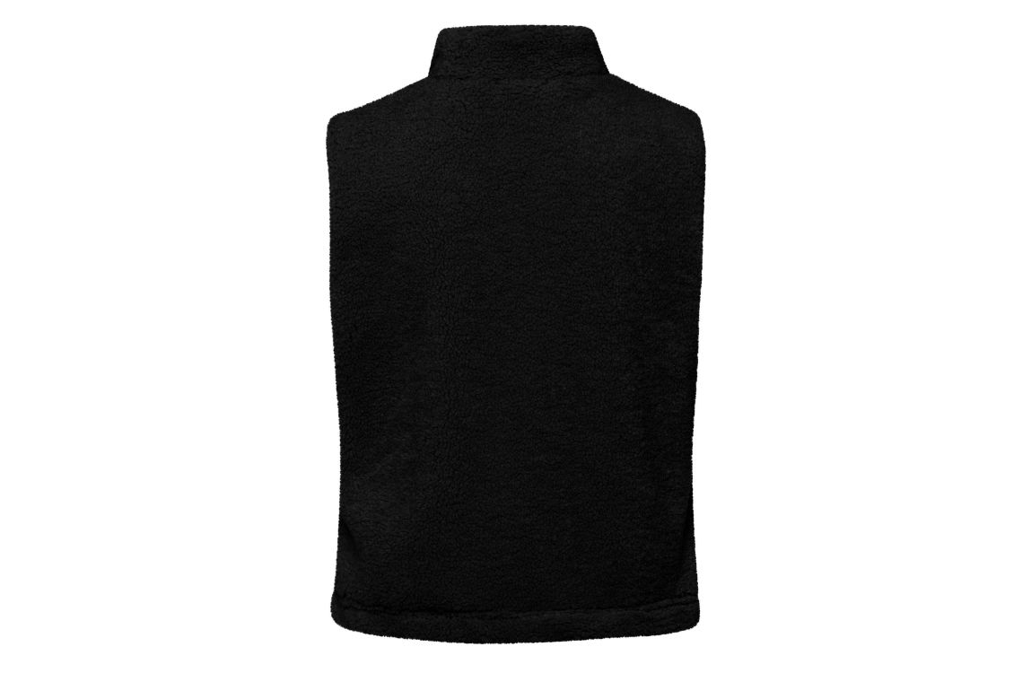 Frank Walder W51Weste 999 Black. Dit rechtvallende model is voorzien van een opstaande kraag en is mouwloos. Deze zwarte gilet van Frank Walder sluit door middel van een rits en is uitgevoerd in teddy materiaal.