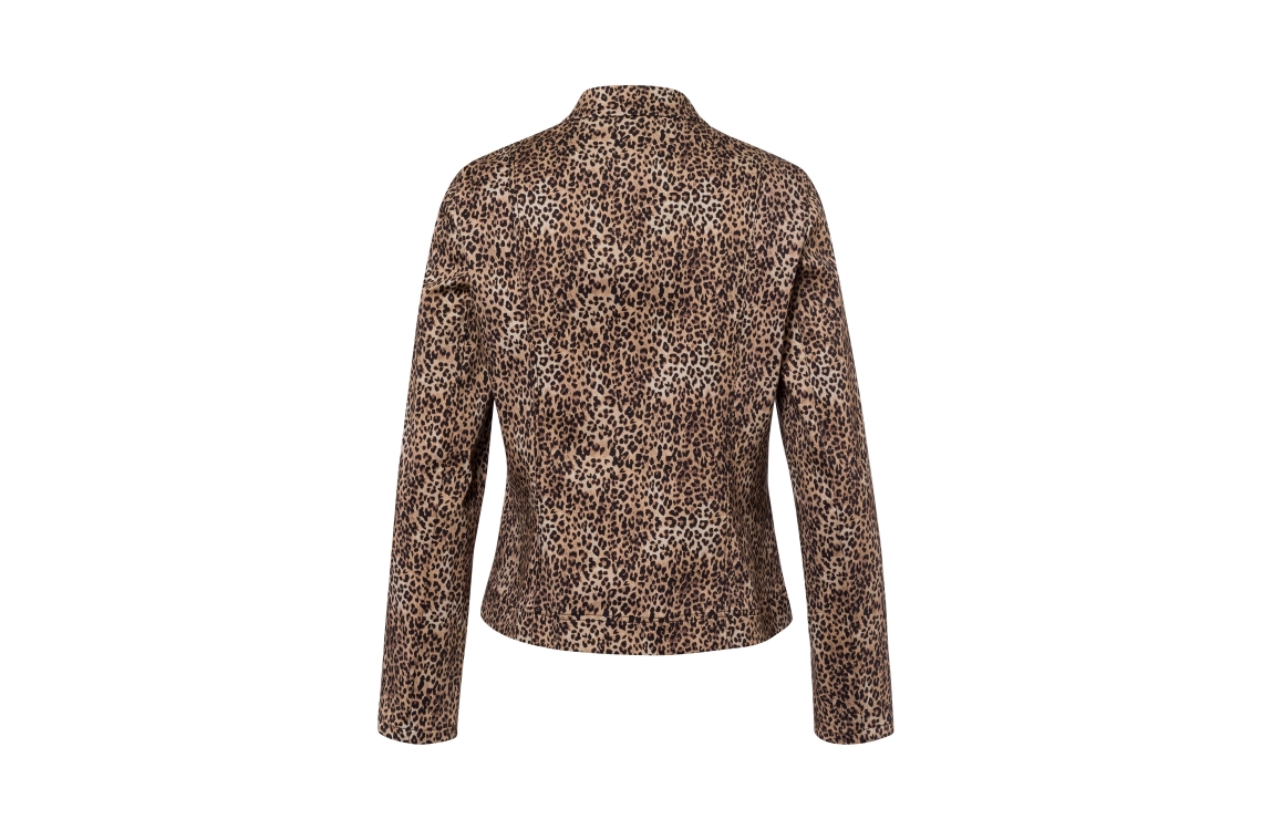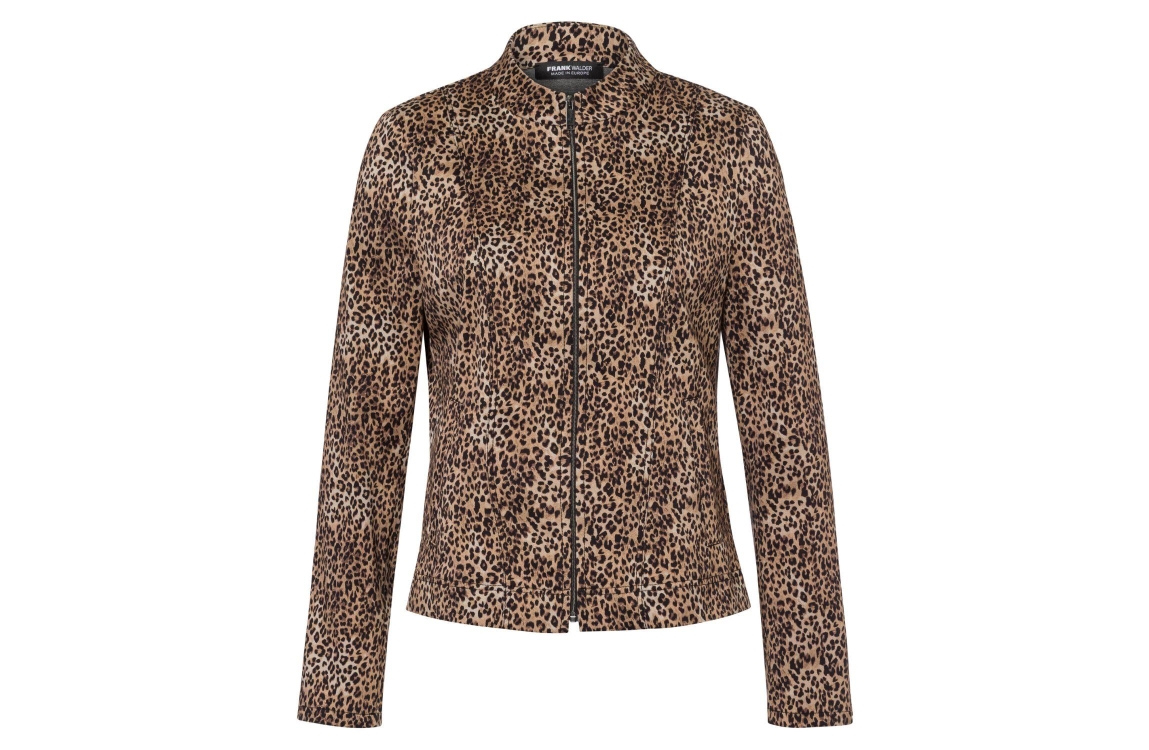 Frank Walder W52Jacke 532/086 Beige/brown print. Dit rechtvallende model heeft een laag opstaande kraag en lange mouwen. Dit bruine panterprint vest van Frank Walder sluit aan de voorzijde door middel van een rits en is voorzien van twee zakken aan de voorzijde.