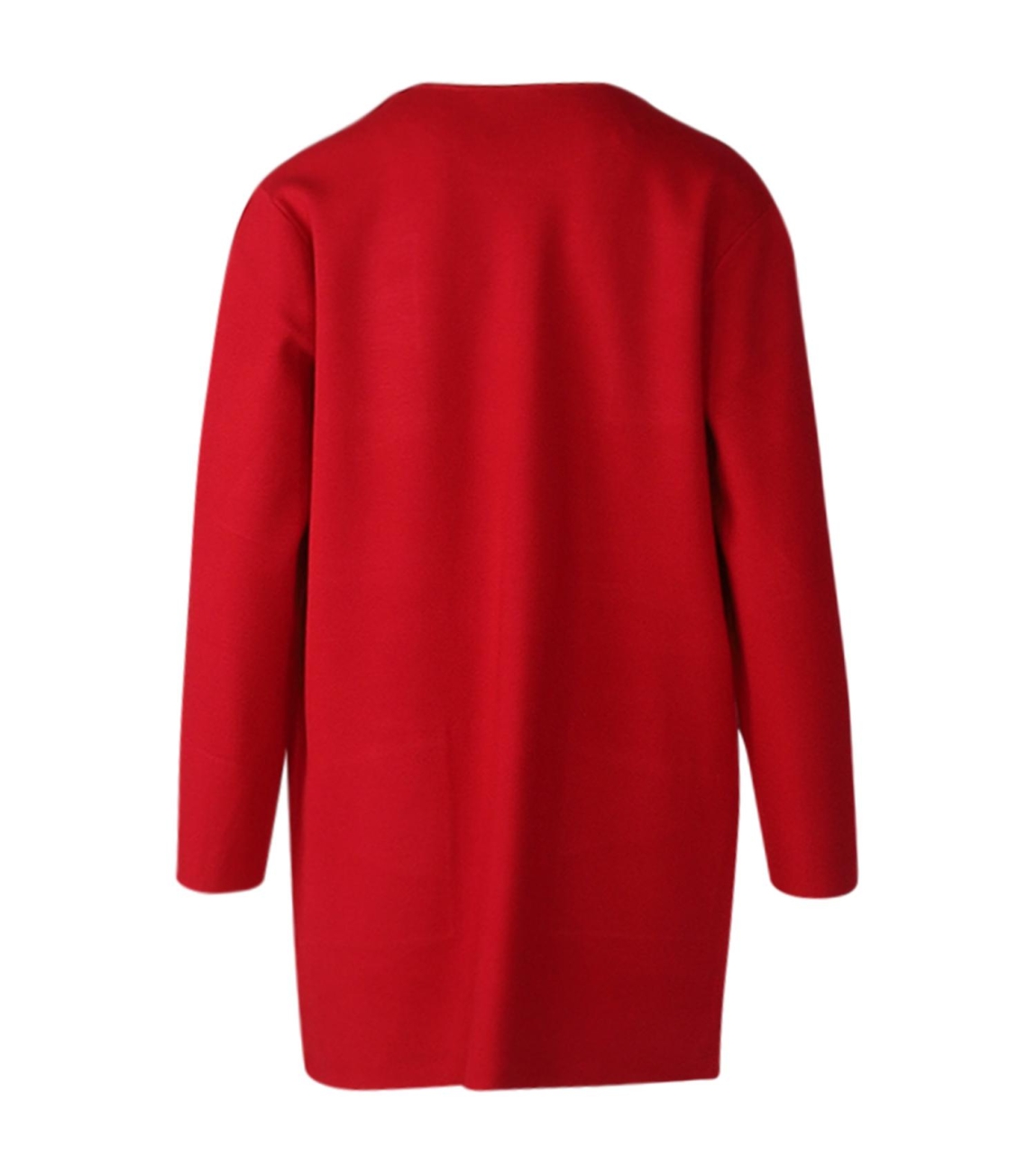 Frank Walder W52Strick 375 Red. Dit rechtvallende model is voorzien van een ronde hals en heeft lange mouwen. Dit openvallend rode vest van Frank Walder beschikt over twee opgestikte zakken.