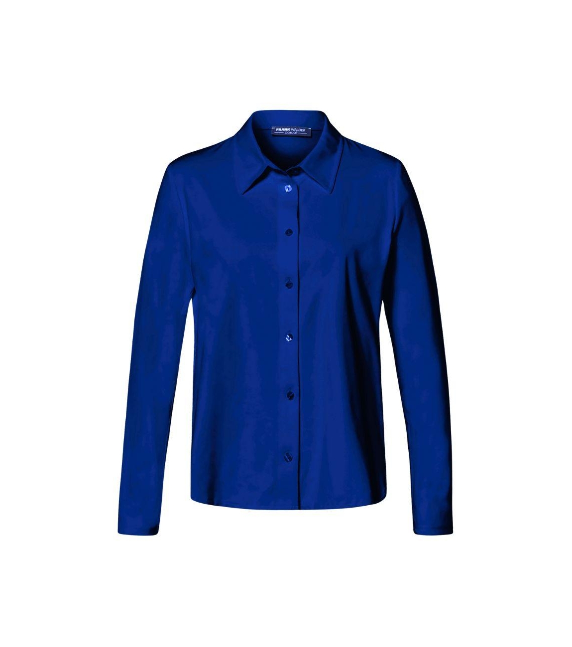 Frank Walder WX52Bluse 527 Blue. Dit rechtvallende model is voorzien van een kraag en heeft lange mouwen. Deze blauwe blouse van Frank walder sluit door middel van knopen en is uitgevoerd in een soepel materiaal.
