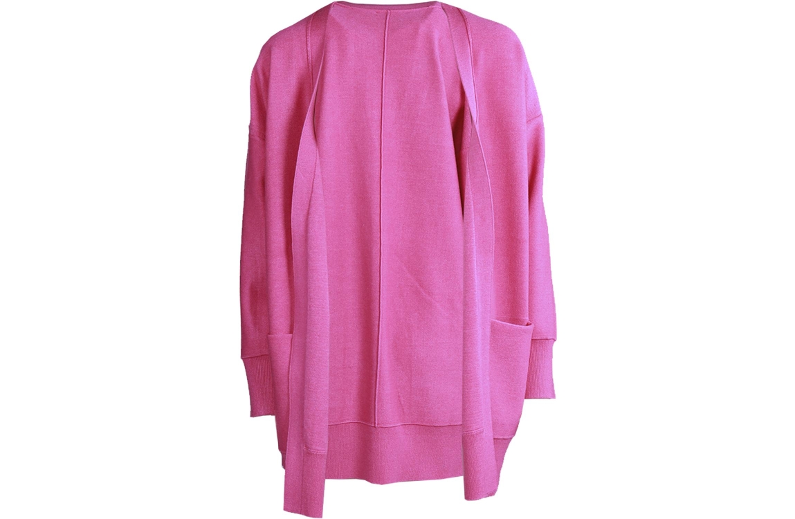 Freequent vest FQLAURA 121951. Dit rechtvallende model is voorzien van lange mouwen en ribgebreide manchetten. Deze fuchsiaroze vest van Freequent beschikt over twee steekzakken aan de voorzijde.