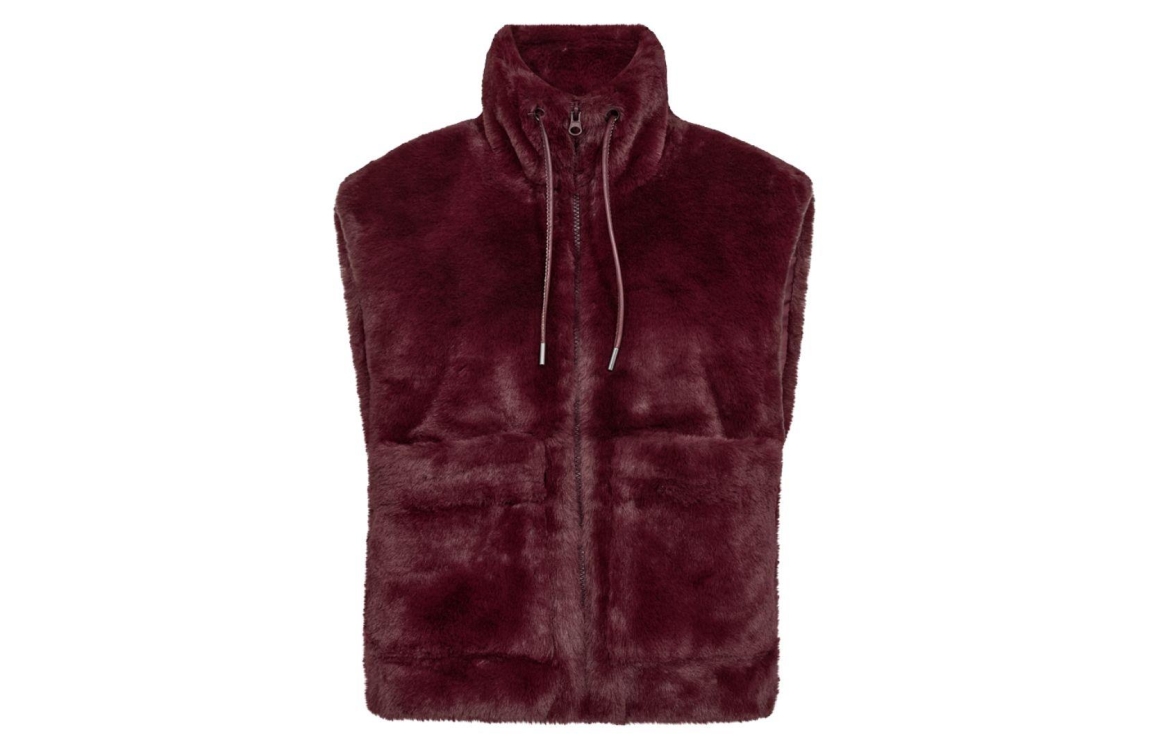 Freequent FQFONY-WAISTCOAT 7051 Port Royale. Dit rechtvallende model is voorzien van een opstaande kraag met trekkoord en is mouwloos. Deze rode gilet van Freequent sluit door middel van een rits en heeft twee steekzakken aan de voorzijde. Dit model is uitgevoerd in een faux fur kwaliteit.