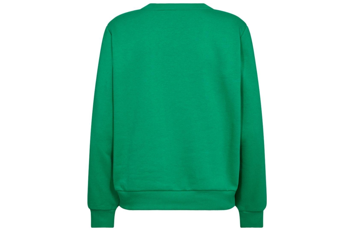 Freequent pullover 207469. Dit rechtvallende model heeft een ronde halslijn en lange mouwen. Deze groene pullover van Freequent is op het voorpand gedetailleerd met een letteropdruk en gebreide letters en is afgewerkt met ribgebreide boorden.