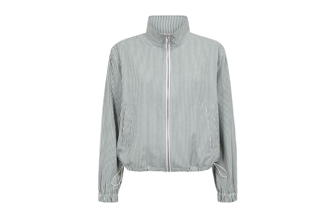 Freequent jasje 207840. Dit bombermodel heeft een opstaande kraag en lange mouwen met elastische boorden. Het donkergroene jasje van Freequent sluit aan de voorzijde door middel van een ritssluiting en is all-over bewerkt met een streepprint. Het model is voorzien van twee steekzakken en is afgewerkt met een elastische zoom met trekkoord.
