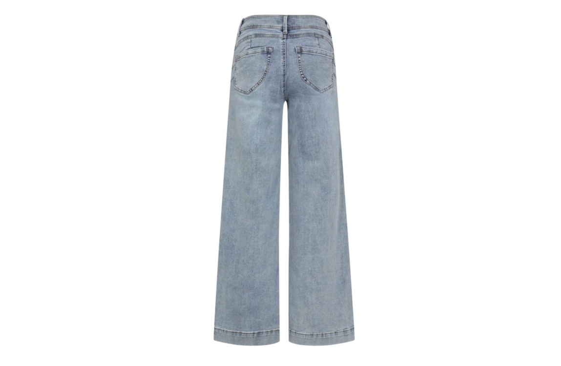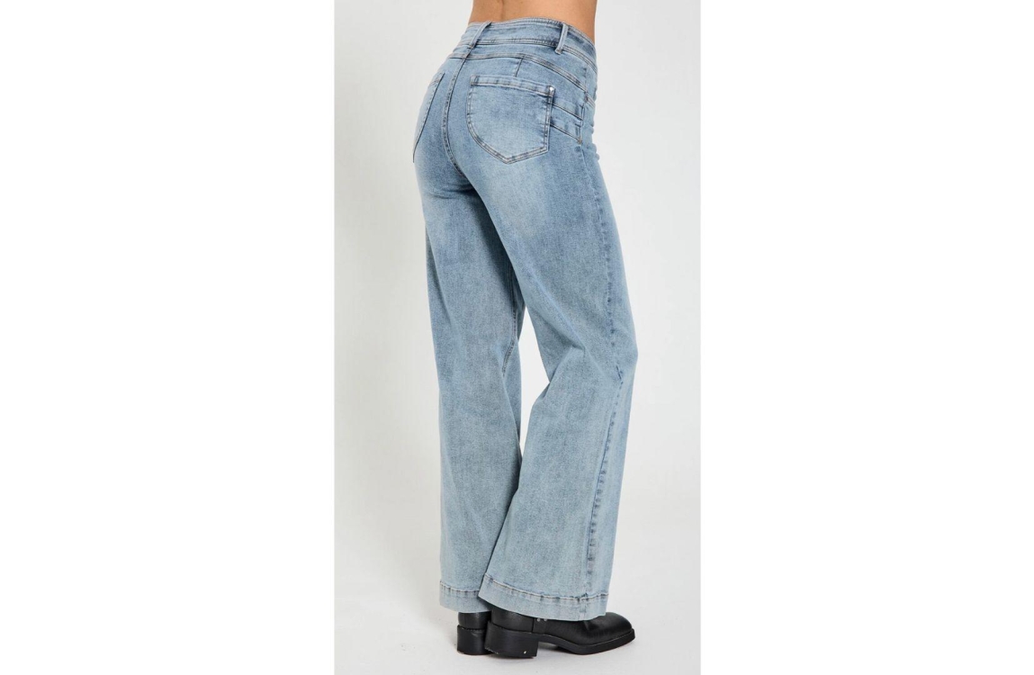 Freequent jeans FQLOPEZ 205312. Dit wide leg model sluit door middel van knopen en een rits afgewerkt met ceintuurlussen. Deze lichte denim jeans van Freequent beschikt over steekzakken aan de voor- en achterzijde.
