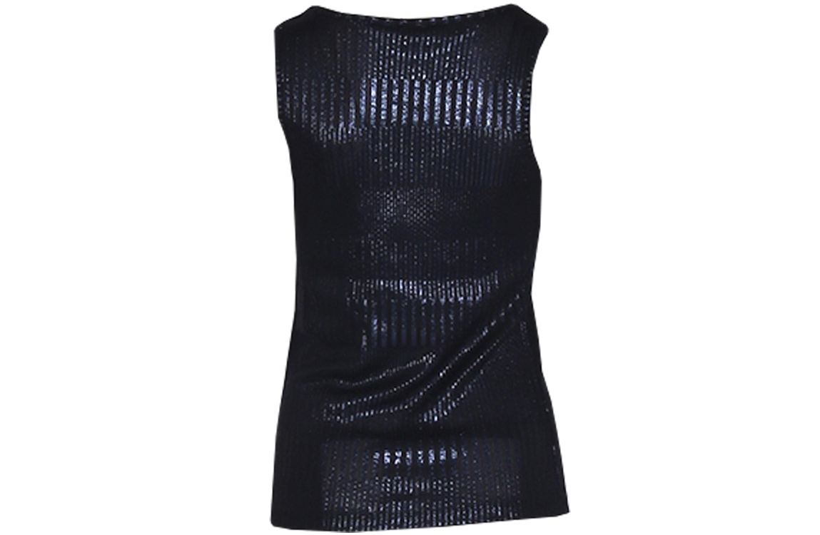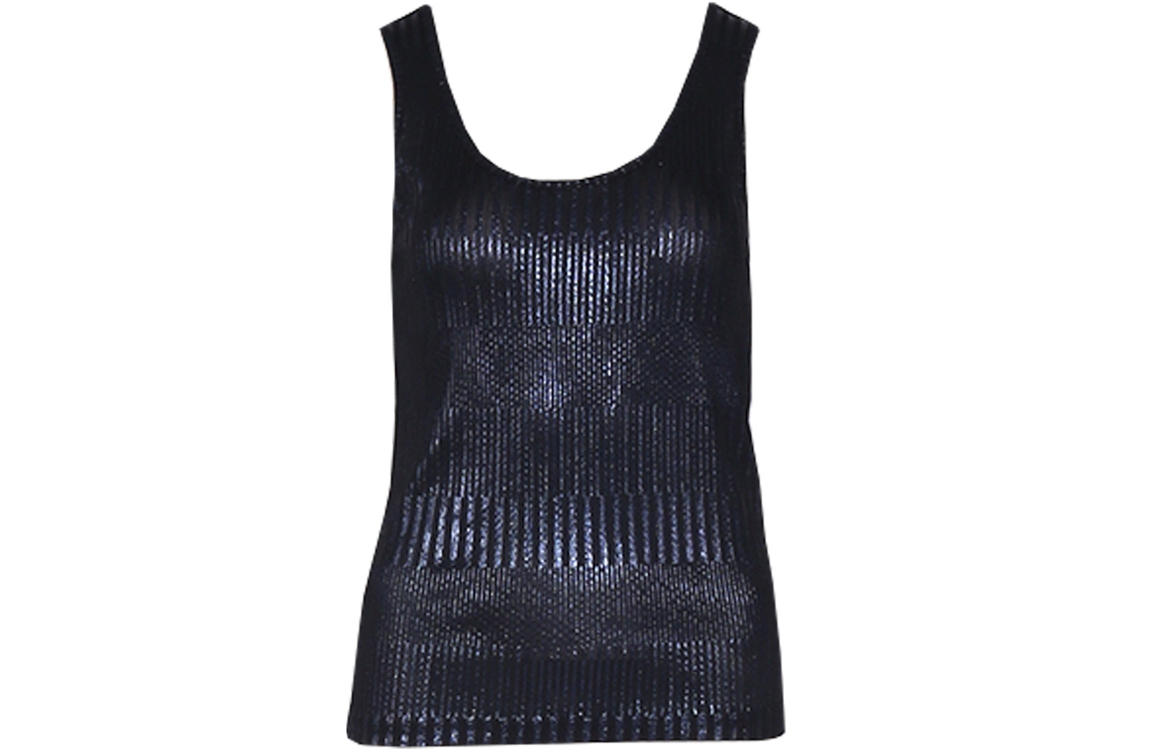 Freequent top FQMATTER 206042. Dit rechtvallend model is voorzien van een ronde hals en is mouwloos. Deze donkerblauwe top van Freequent is bewerkt met metallic all-over.