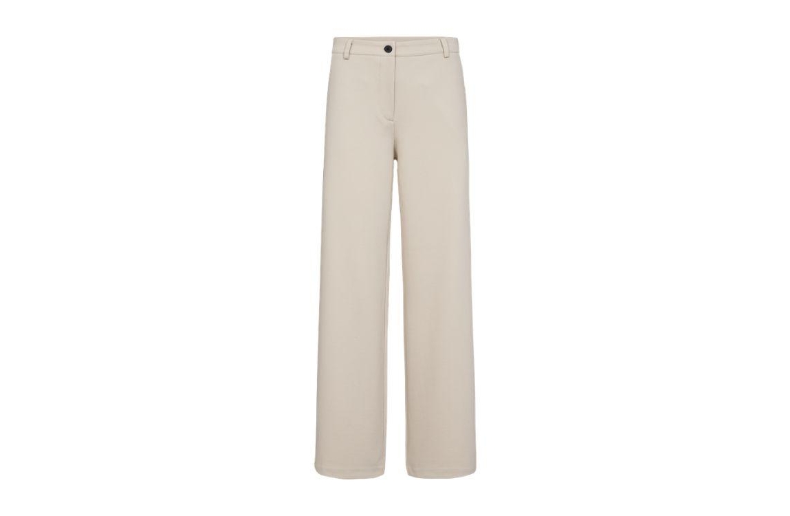 Freequent pantalon 200632. Dit straight fit model sluit door middel van een knoop- en ritssluiting en is voorzien van ceintuurlussen. Deze beige pantalon van Freequent beschikt over twee schuine steekzakken aan de voorzijde en twee paspelzakken aan de achterzijde.