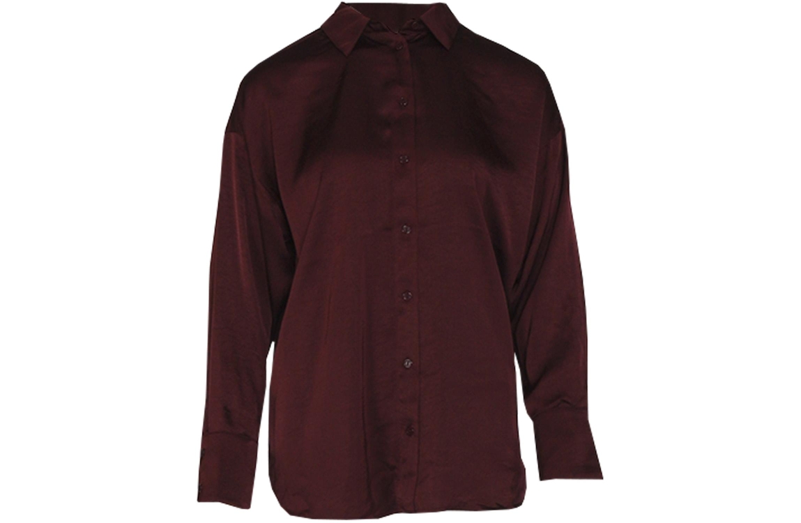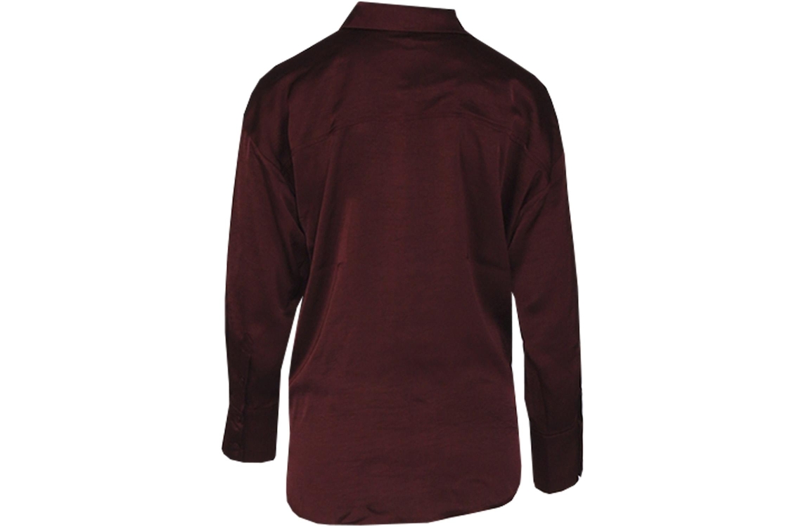 Freequent shirt FQNIRA 204492. Dit rechtvallend model is voorzien van een kraag en heeft lange mouwen. Deze bordeaux rode shirt van Freequent is uitgevoerd in een glanzende kwaliteit en sluit door middel van knopen.