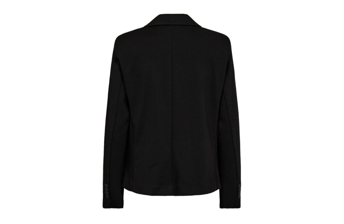 Freequent blazer 207565. Dit rechtvallend model is voorzien van een reverskraag en heeft lange mouwen. Deze zwarte blazer van Freequent sluit door middel van een knoop en heeft twee klepzakken.