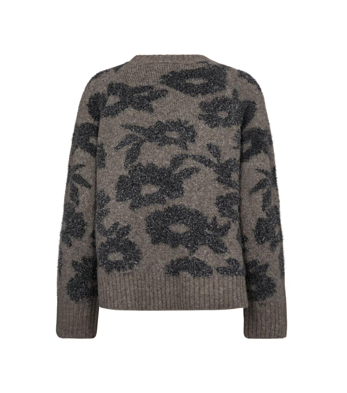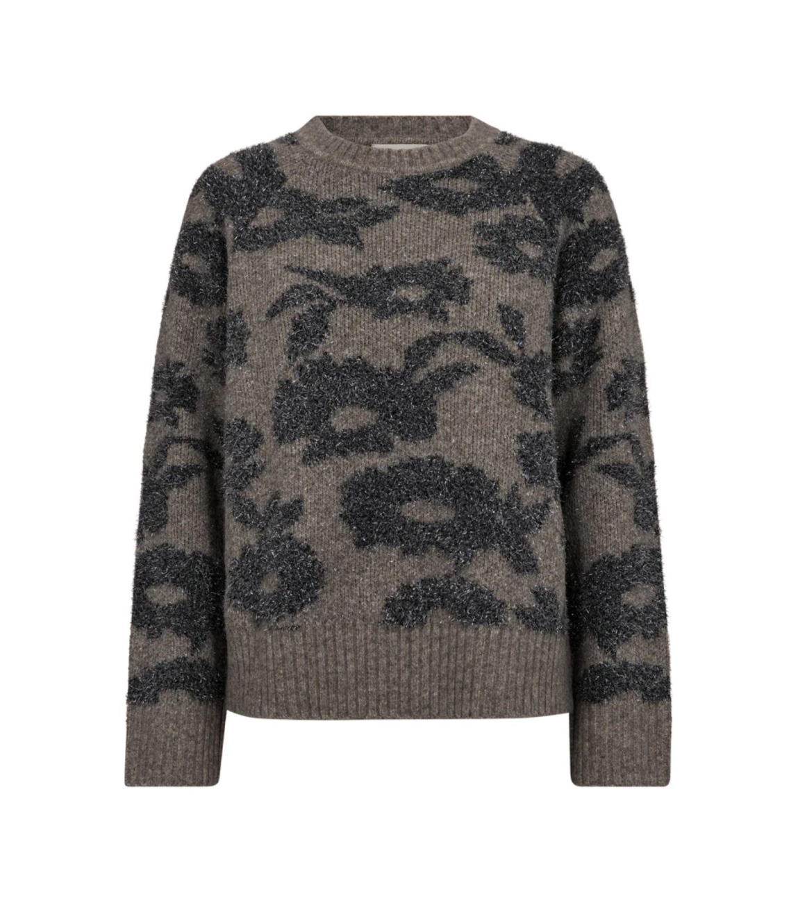 Freequent Jaquard pullover Morel mel w.med.grey melange. Dit rechtvallende model is voorzien van een ronde hals en heeft lange mouwen. Deze briune pullover van Freequent is all-over bewerkt met een print en heeft een glanzende uitstraling. Dit gebreide model is afgewerkt met ribboorden.