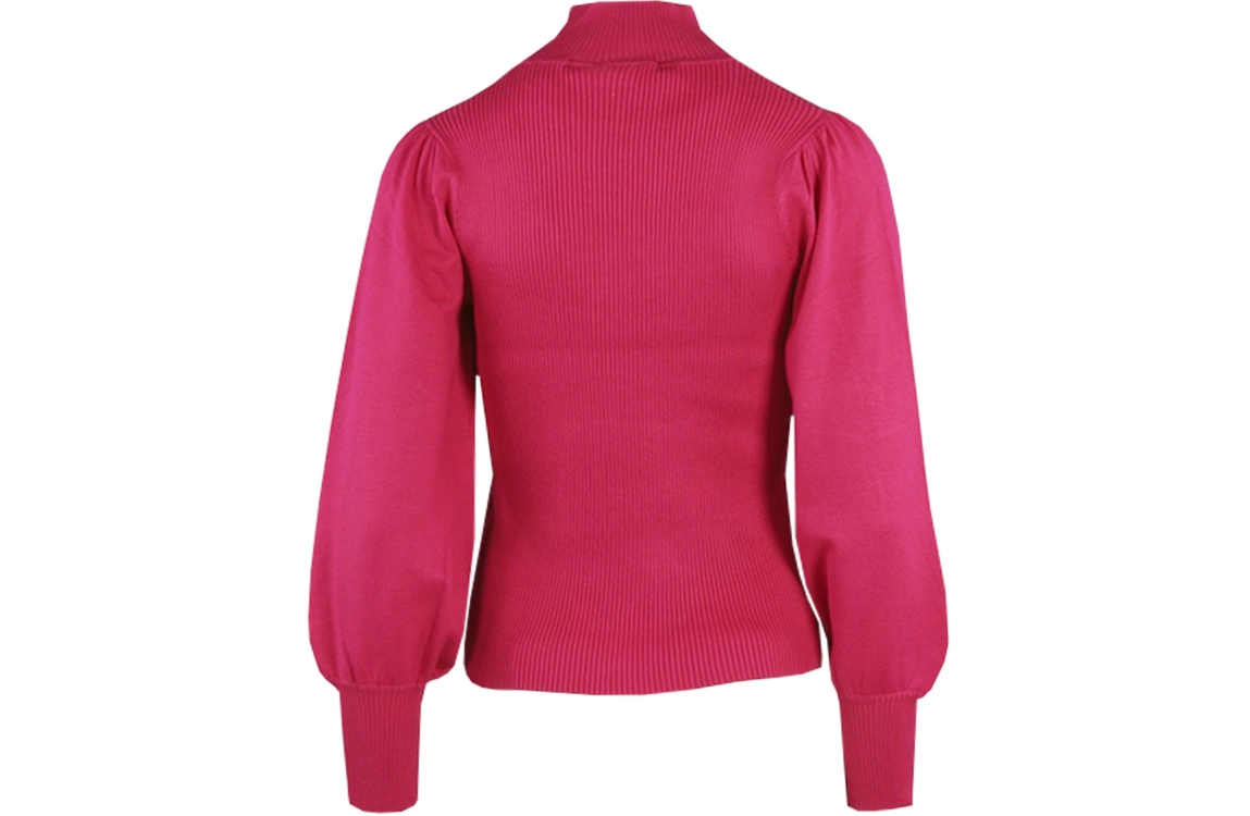 Freequent pullover 202769 FQTORFI. Dit aangesloten model heeft een turtle en lange ballonmouwen. Deze roze pullover van Freequent heeft fijngebreide boorden en een fijne siernaad op het voorpand.