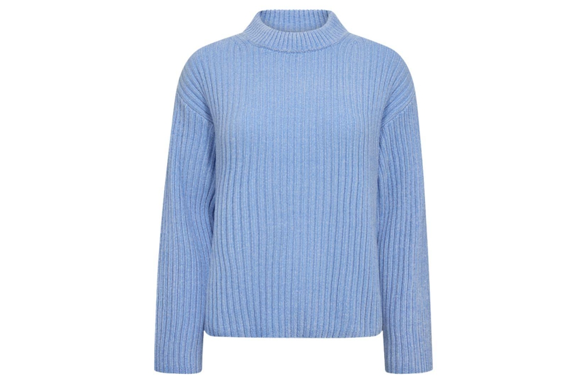 Freequent trui 205063. Dit rechtvallende model heeft een turtleneck en lange mouwen. Deze lichtblauwe trui van Freequent is uitgevoerd in een ribgebreide kwaliteit en heeft een comfortabele pasvorm.
