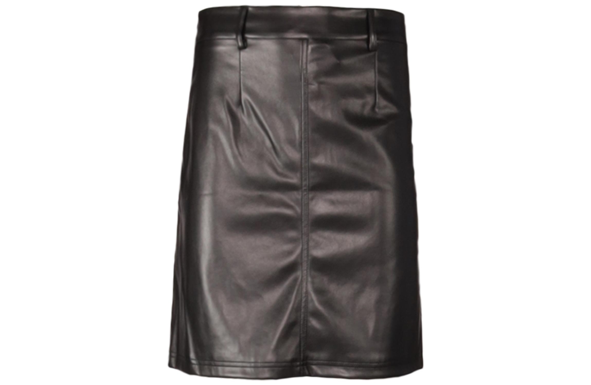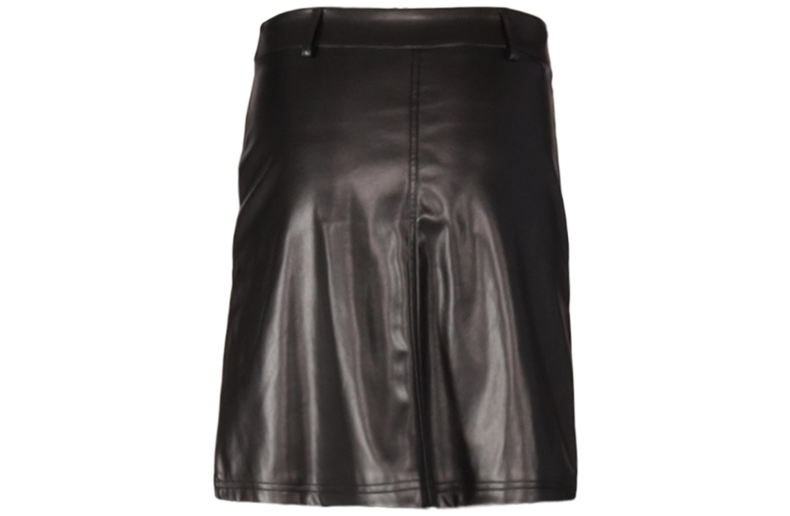Freequent rok 125903 Fqharley. Dit rechtvallend model sluit door middel van een rits aan de zijkant en is afgewerkt met ceintuurlussen. Deze zwarte faux leren rok van Freequent is afgewerkt met een decoratieve naad aan de voor- en achterzijde.