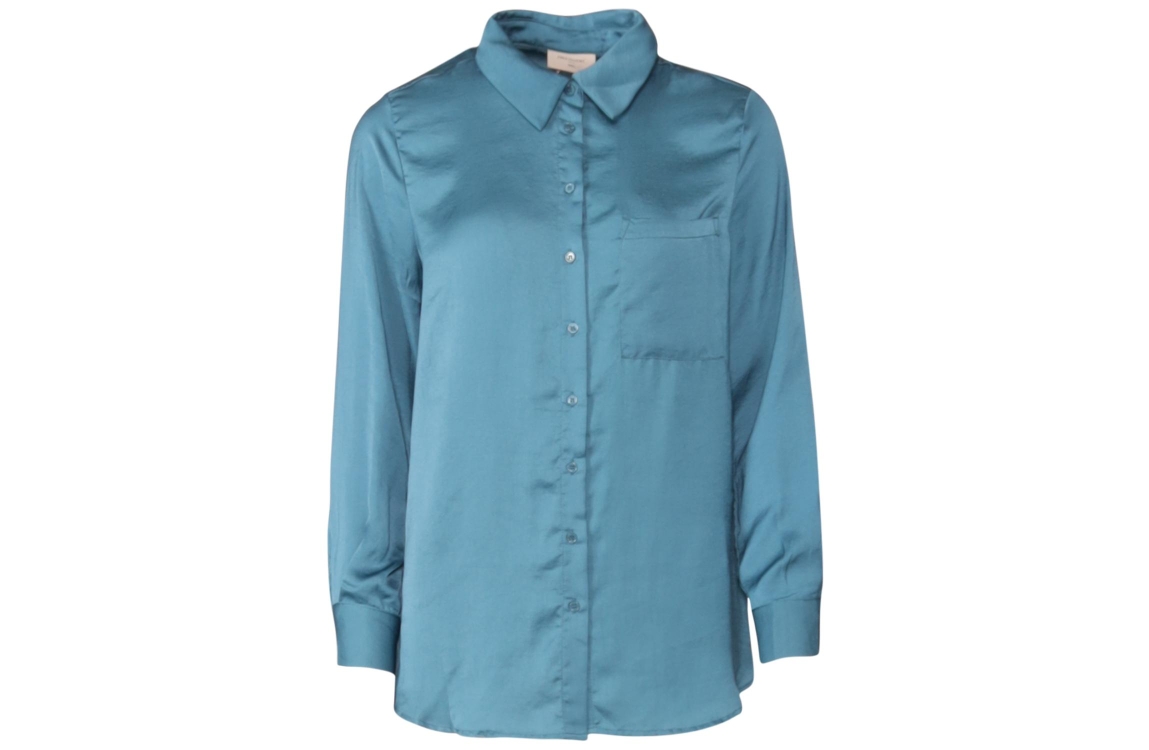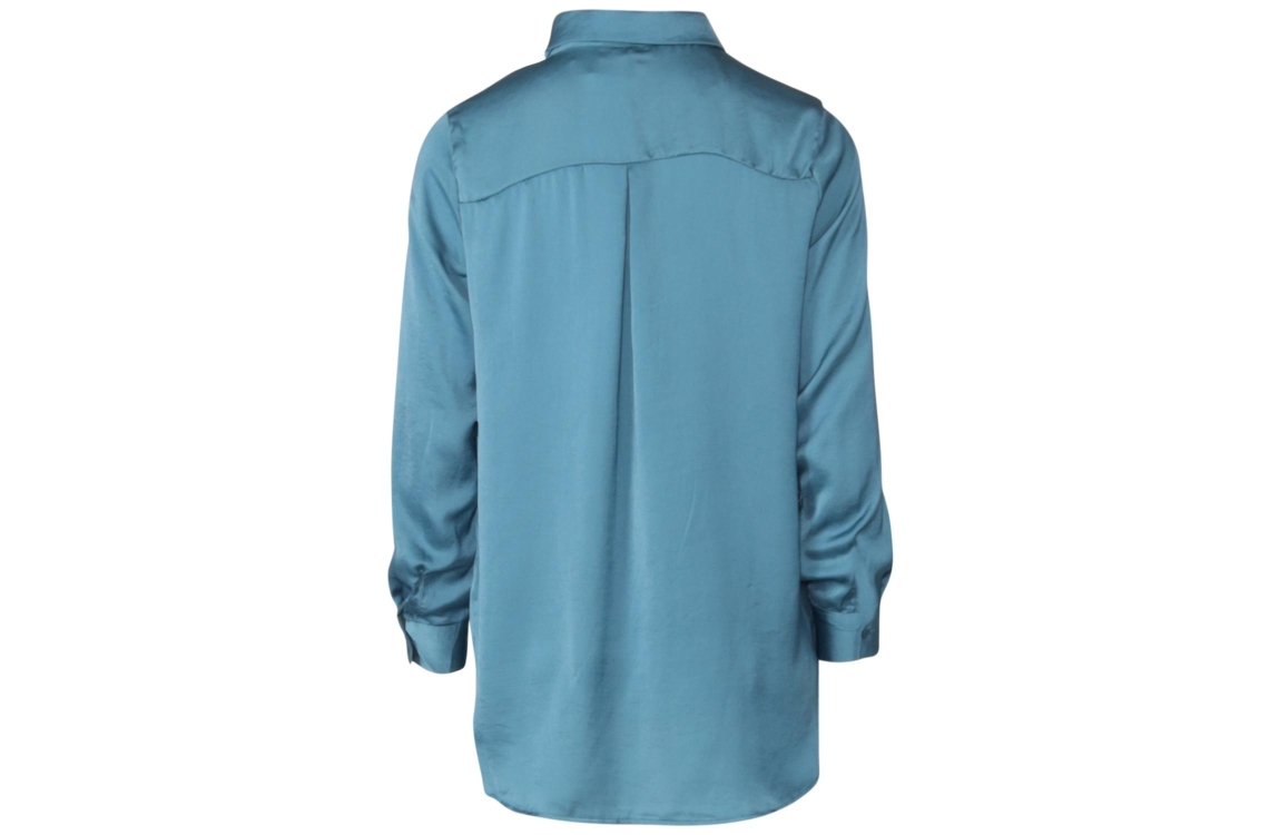Freequent blouse Fqvert. Dit rechtvallend model is voorzien van een kraag en heeft lange mouwen. Deze blauwe blouse van Freequent sluit door middel van knopen en is uitgevoerd in een satijnen look and feel kwaliteit. Dit model is afgewerkt met een borstzak