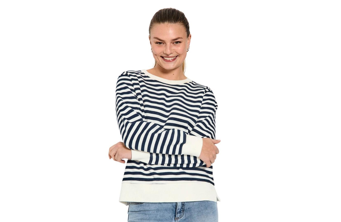 • Freequent Striped sweatshirt Off-white w. navy blazer