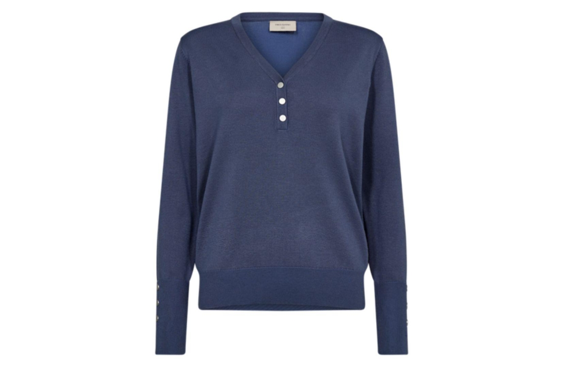Freequent V-neck w. placket Vintage indigoFreequent V-neck w. placket Vintage indigo