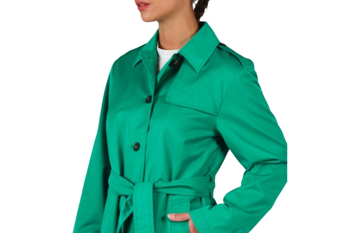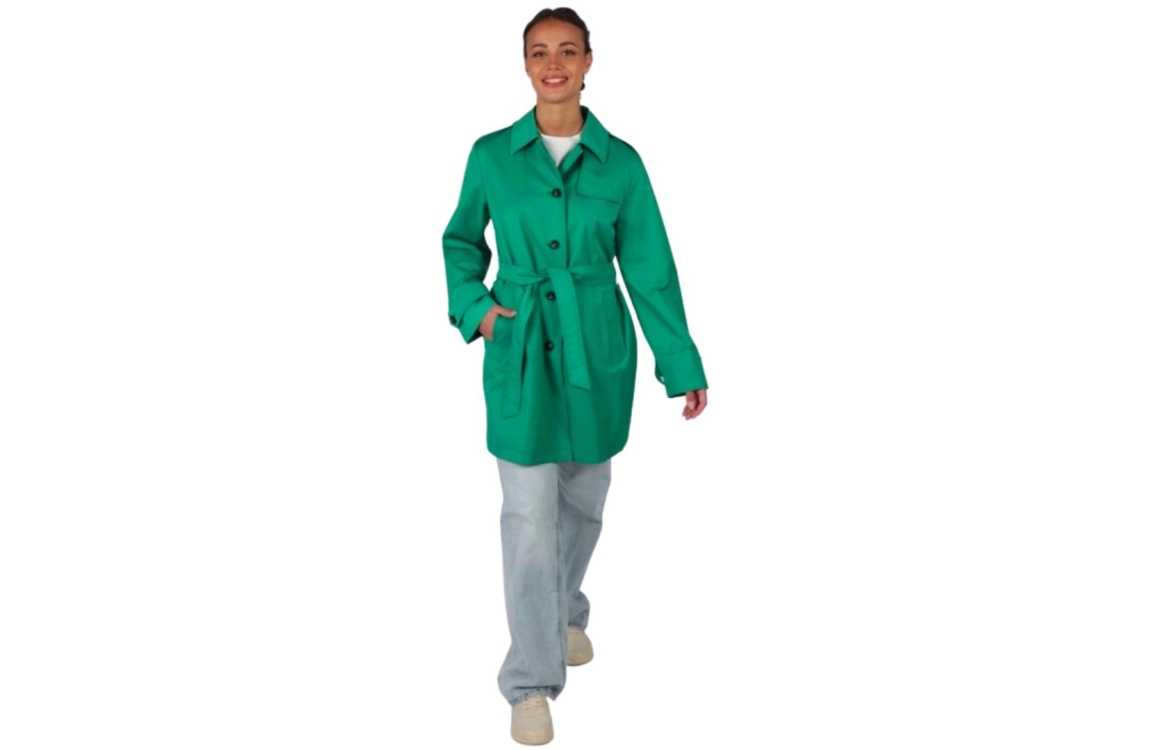 Fuchs Schmitt jas 300424693. Dit rechtvallende model is voorzien van een uitstaande kraag, lange mouwen en sluit door middel van knopen en een ceintuur. Deze groene jas van Fuchs Schmitt is voorzien van verschillende accenten met knopen waardoor de jas een' trenchcoat' look krijgt. Deze jas is voorzien van openstaande steekzakken op het voorpand.