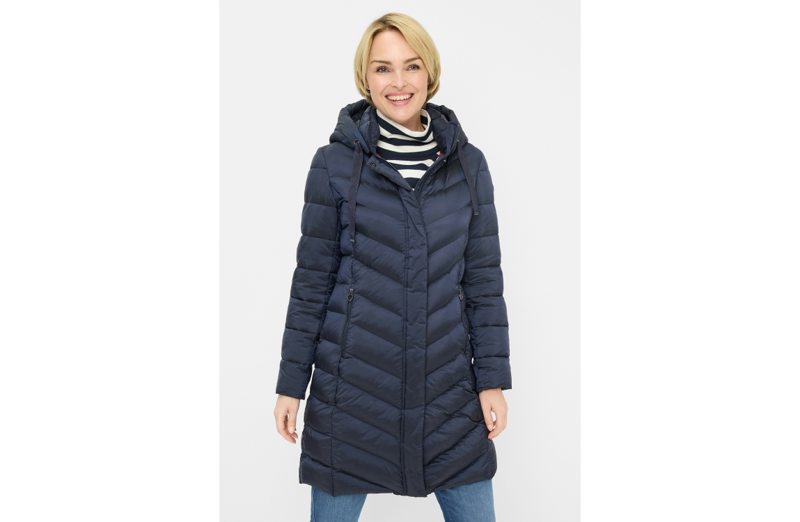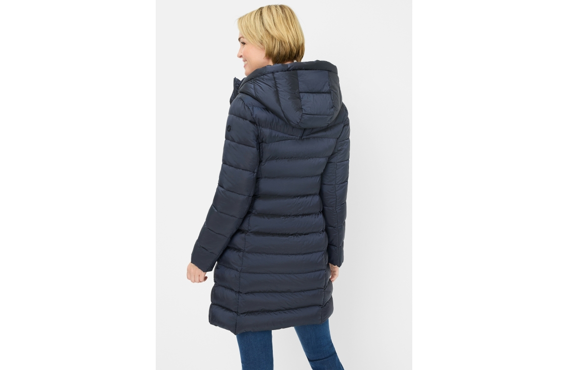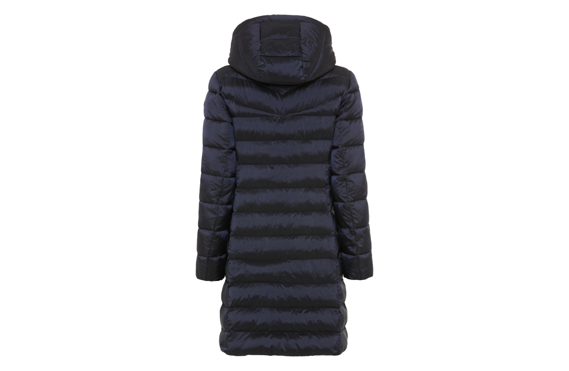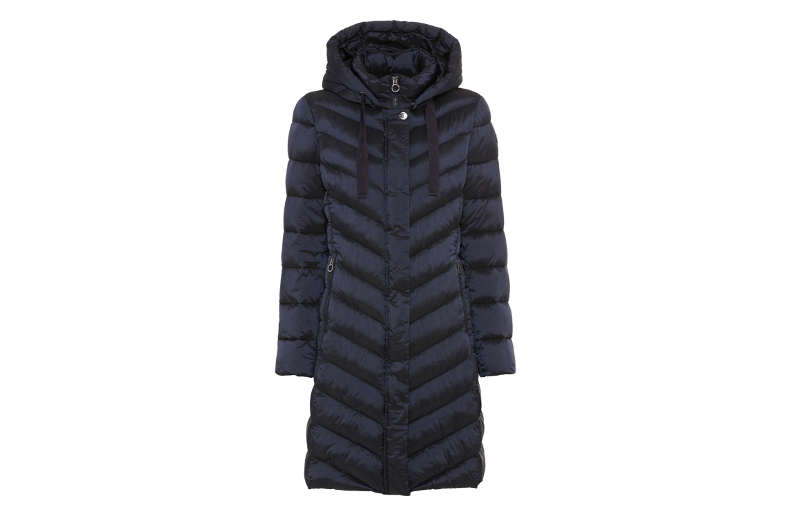 Fuchs Schmitt jas 604179587. Dit rechtvallend model is voorzien van een afneembare capuchon met een trekkoord en heeft lange mouwen afgewerkt met een merkembleem. Deze donkerblauwe gewatteerde jas van Fuchs Schmitt sluit door middel van een dubbele rits en beschikt over ritszakken aan de voorzijde