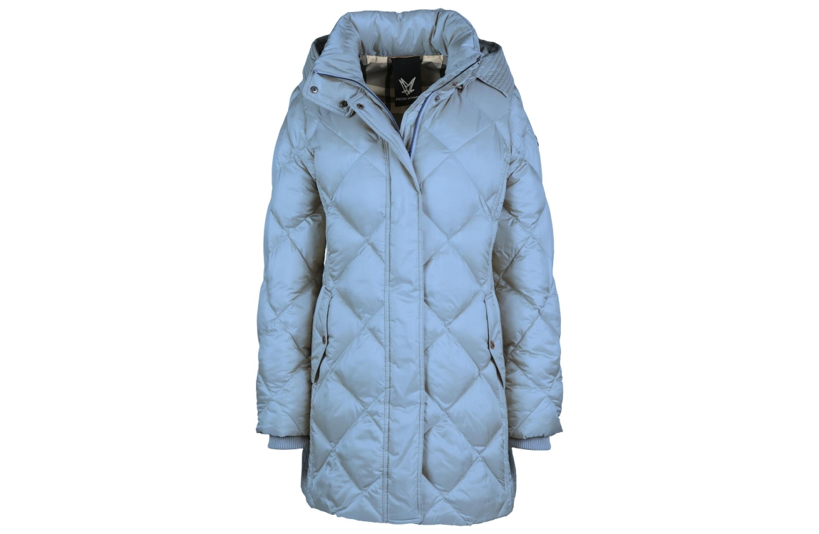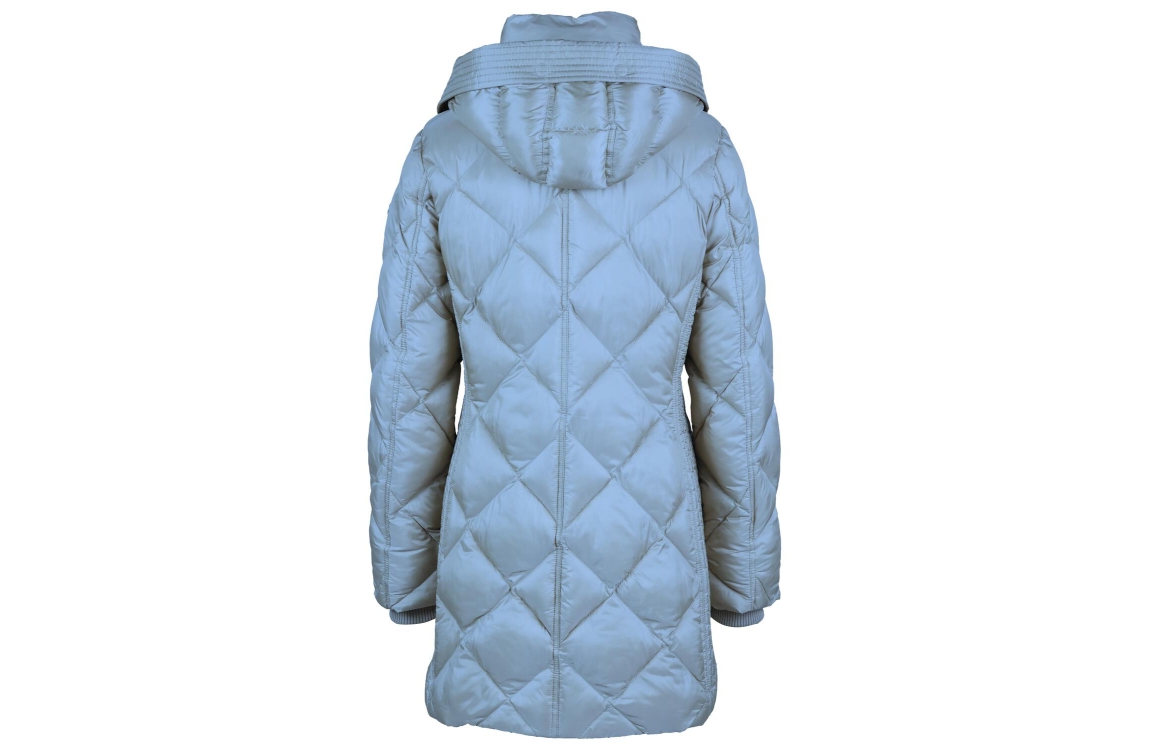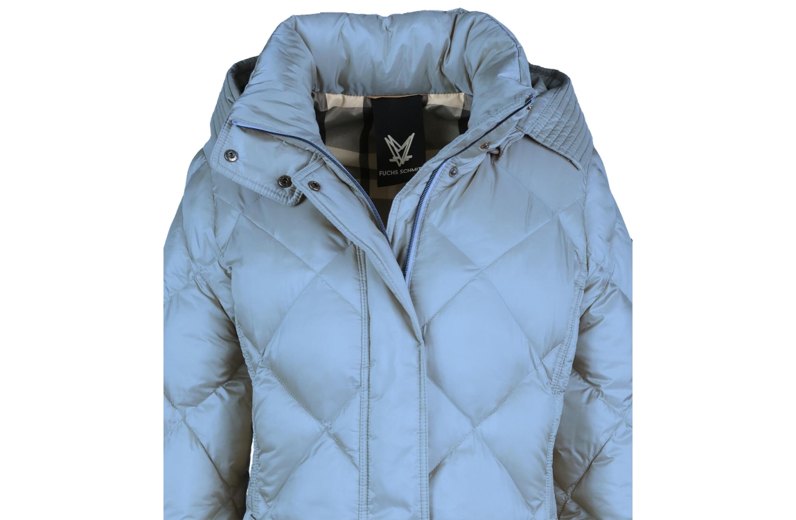 Fuchs Schmitt winterjas 404263405. Dit aangesloten model is voorzien van een capuchon en heeft lange mouwen. Deze lichtblauwe jas van Fuchs Schmitt sluit door middel van een rits en afgewerkt met twee schuine steekzakken met klep aan de voorzijde. Dit model is uitgevoerd in een gewatteerde kwaliteit voorzien van een ruitmotief.
