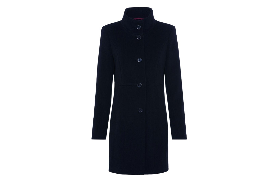 Fuchs und Schmitt jas 650022563. Dit rechtvallend model is voorzien van een opstaande kraag en heeft lange mouwen. Deze donkerblauwe jas van Fuchs und Schmitt sluit door middel van knopen.