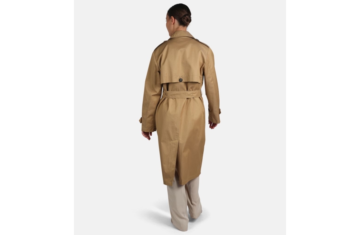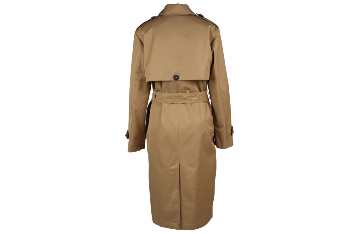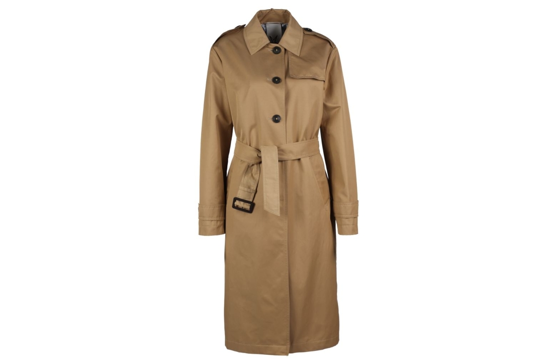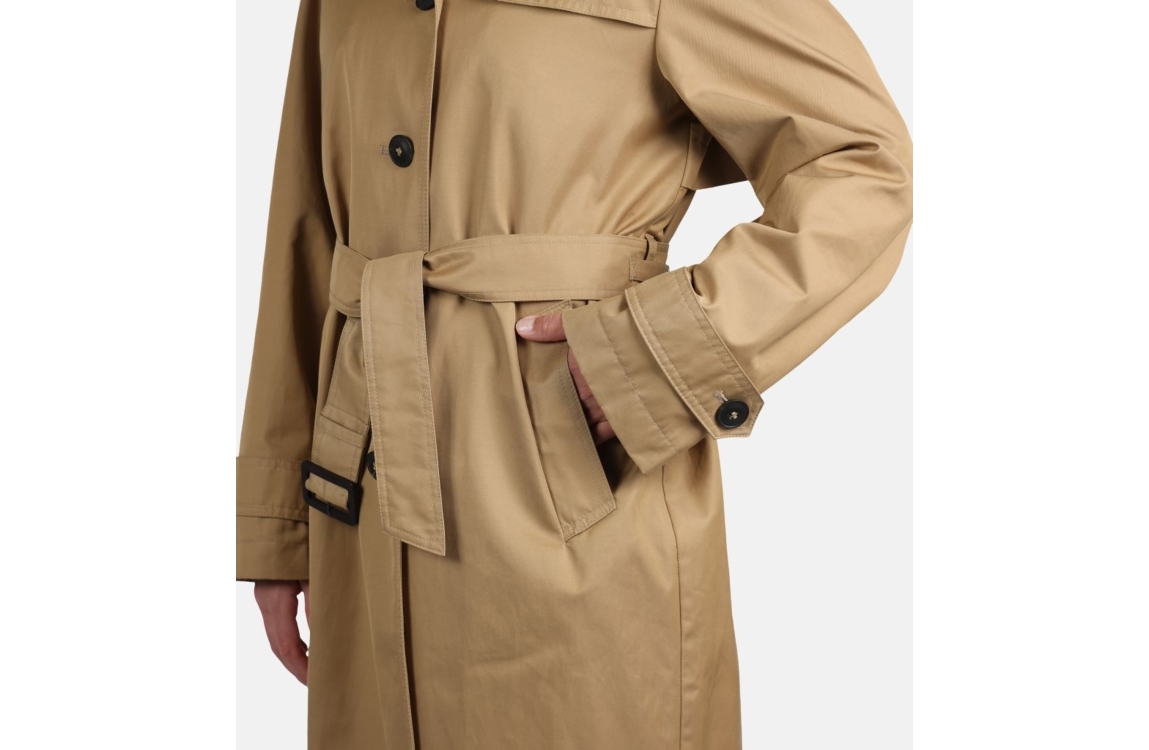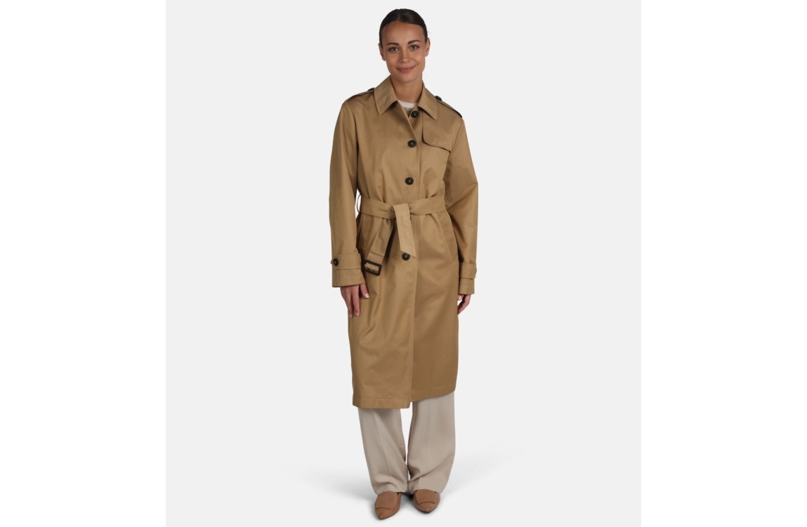 Fuchs Schmitt jas 300364693. Dit rechtvallende model is voorzien van een uitstaande kraag, lange mouwen en sluit door middel van knopen en een ceintuur. Deze bruine jas van Fuchs Schmitt is voorzien van verschillende accenten met knopen waardoor de jas een' trenchcoat' look krijgt. Deze jas is voorzien van zakken die sluiten door middel van knopen op het voorpand.