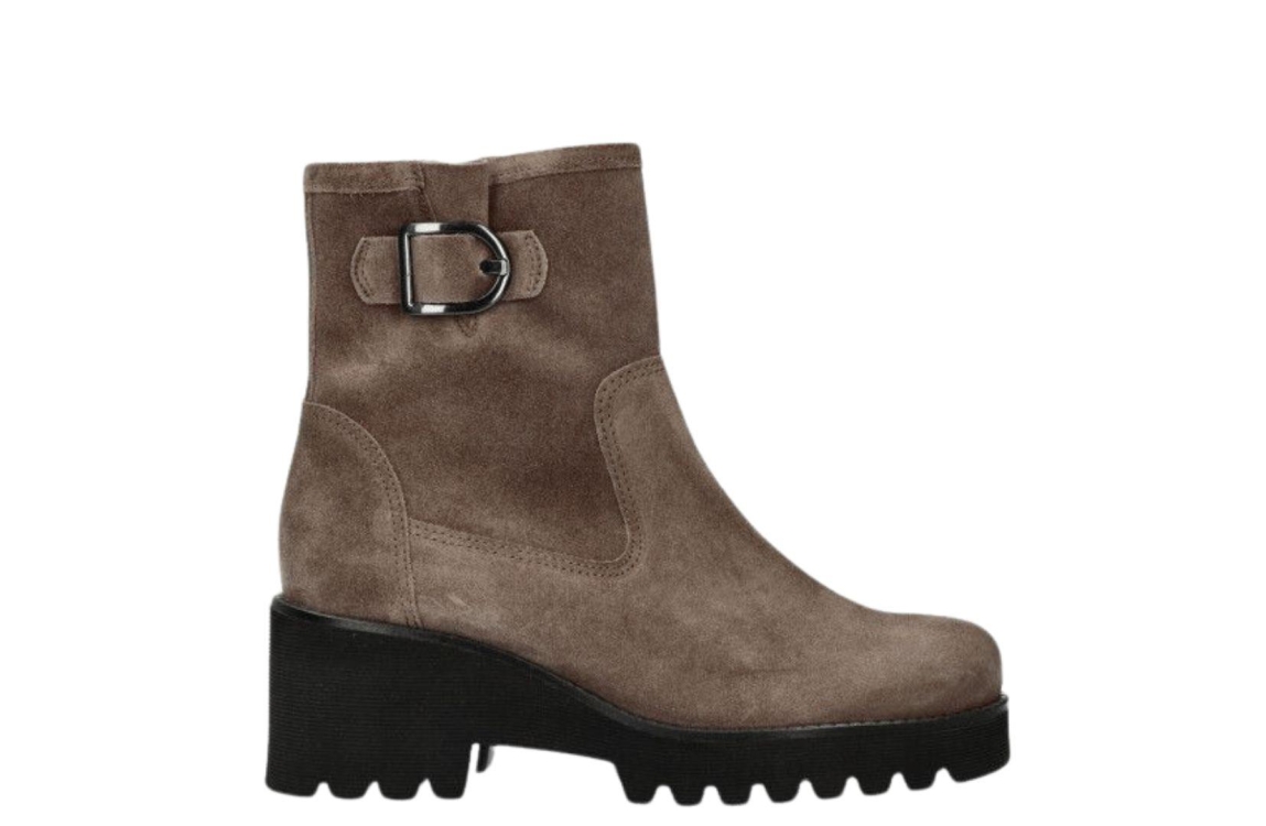 Gabor laars 56.622.34. Dit bruine laarsje van Gabor is uitgevoerd in een suede kwaliteit en is bewerkt met een gesp aan de zijkant. Dit model is voorzien van een zwarte dikke zool.