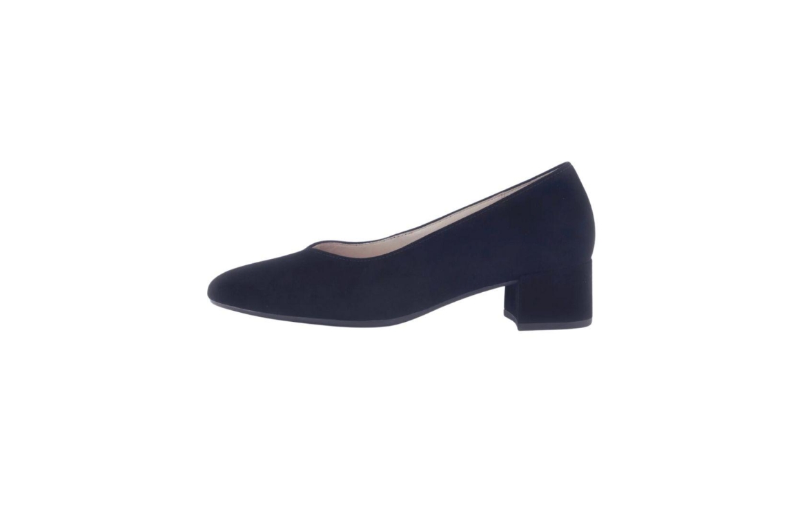 Gabor pumps 61.431.16. Dit instapmodel is voorzien van een lichttoelopende neus. Deze donkerblauwe suède pumps van Gabor zijn afgewerkt met een beklede hak van 4,5 cm.