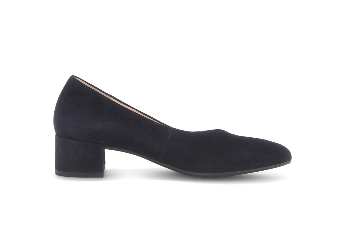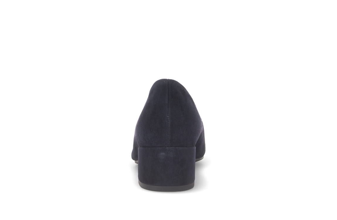 Gabor pumps 81.431.16. Dit instapmodel is voorzien van een toelopende neus. Deze donkerblauwe suède pumps van Gabor zijn afgewerkt met een beklede hak van 4,5 cm.