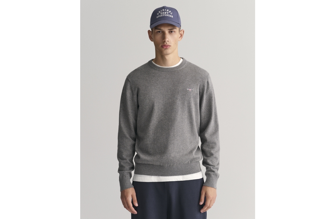 • Gant Classic Cotton Crew Neck Sweater 92 dark grey melange