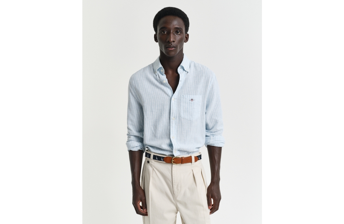 • Gant REG COTTON LINEN STRIPE SHIRT 457 fresh blue