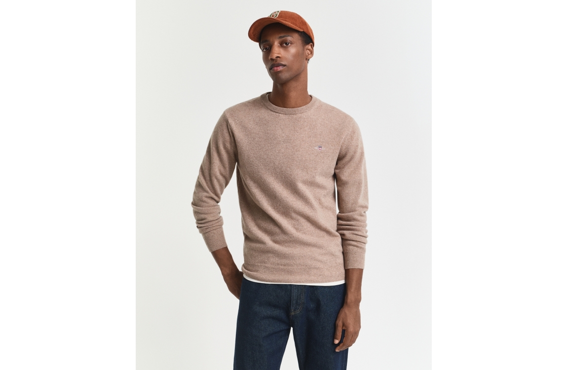 • Gant Superfine Lambswool Crew Neck Sweater 295 dk. sand melange