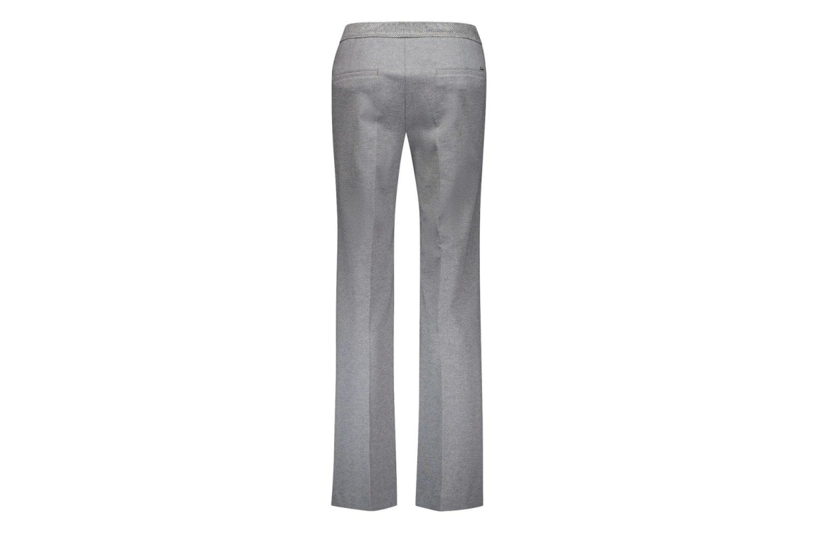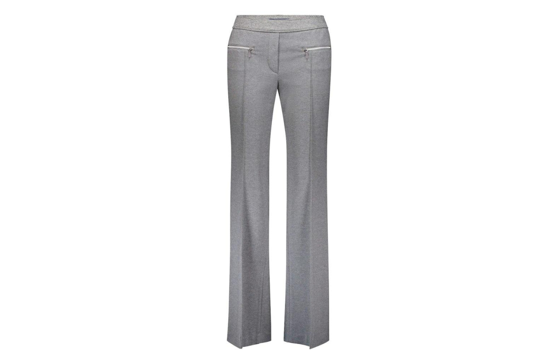 Gardeur broek ZARIA1-P 601281. Dit regular fit model sluit door middel van een elastische boord. Deze grijze broek van gardeur beschikt over twee ritszakken aan de voorzijde en twee paspelzakken aan de achterzijde. Dit model is gedetailleerd met een naaddedail over de lengtes aan de voorzijde.