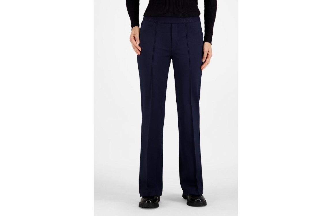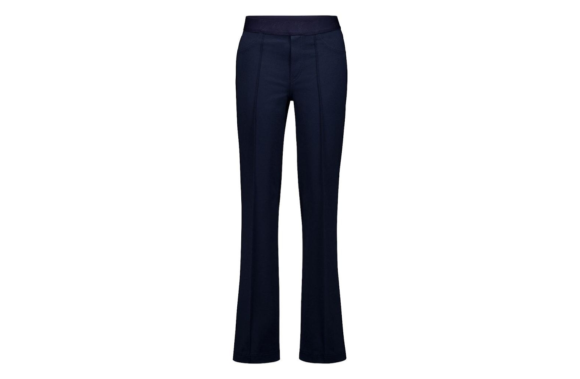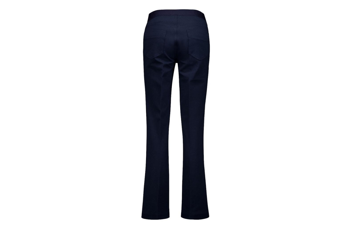 Gardeur ZILLA broek 601461. Dit regular fit model sluit door middel van een elastische boord. Deze donker blauwe Gardeur broek beschikt over twee fake-zakken aan de voorzijde. Dit model heeft twee steekzakken aan de achterzijde en is bewerkt met een branding boord.