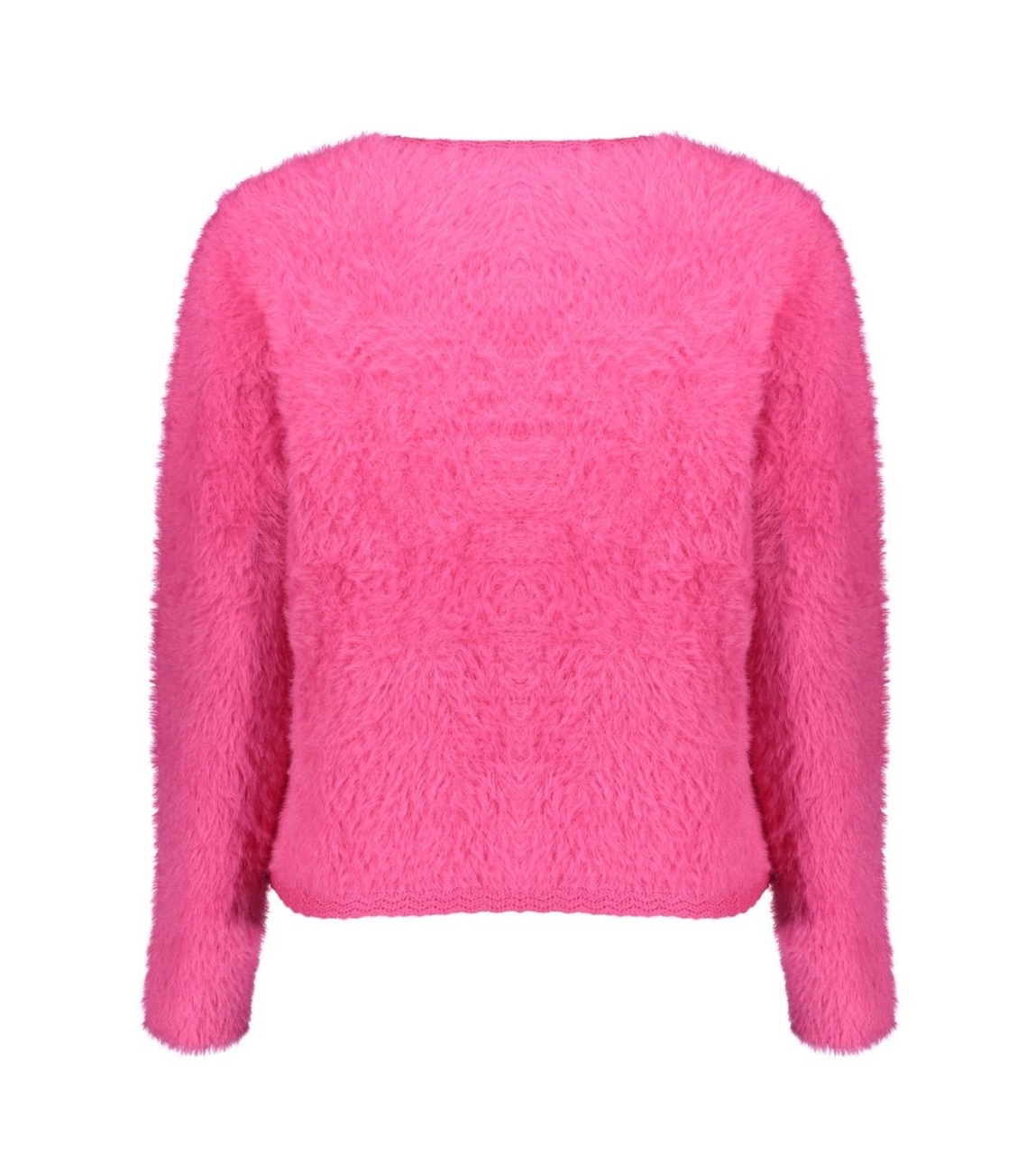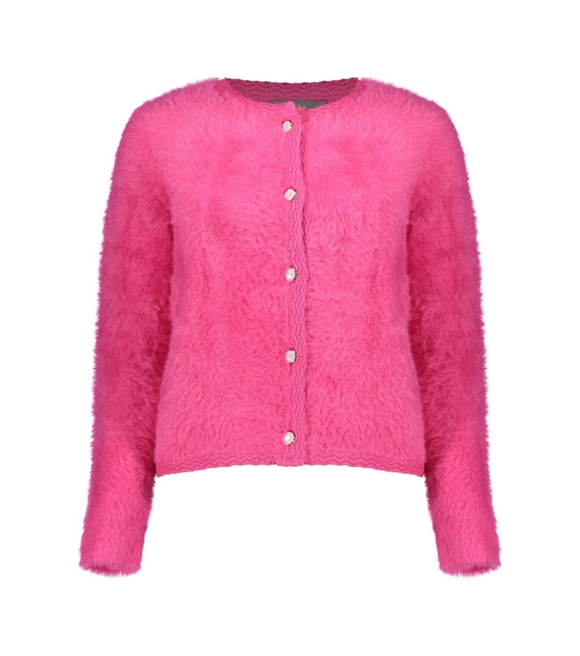 Geisha cardigan 54807-10. Dit rechtvallende model heeft een ronde halslijn en lange mouwen. Deze roze cardigan van Geisha sluit aan de voorzijde door middel van goudkleurige knopen en is uitgevoerd in een hairy- kwaliteit.