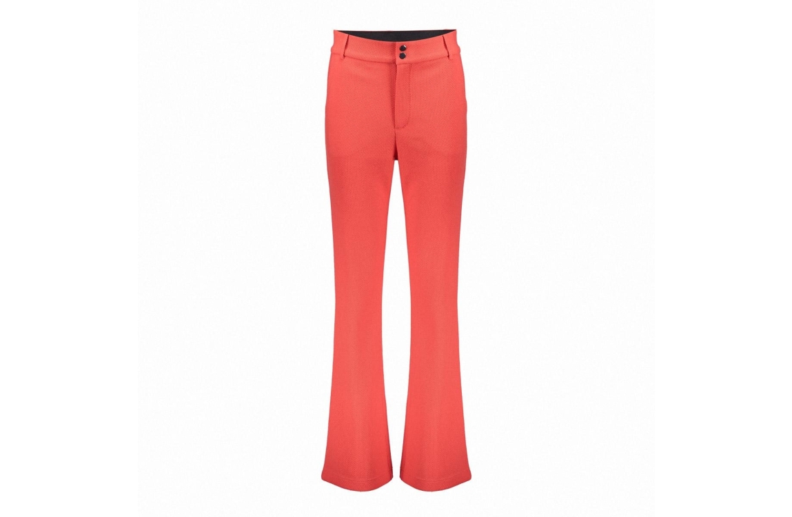 Geisha broek 51126-21. Dit wide leg model sluit door middel van twee drukknopen en een rits. Deze rode broek van Geisha is afgewerkt met twee steekzakken en is uitgevoerd in een gestructureerde elastische kwaliteit. Deze broek is leuk te combineren met bijpassende top.
