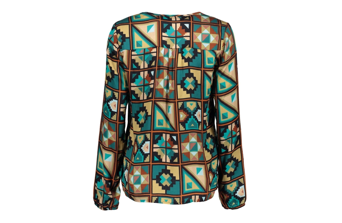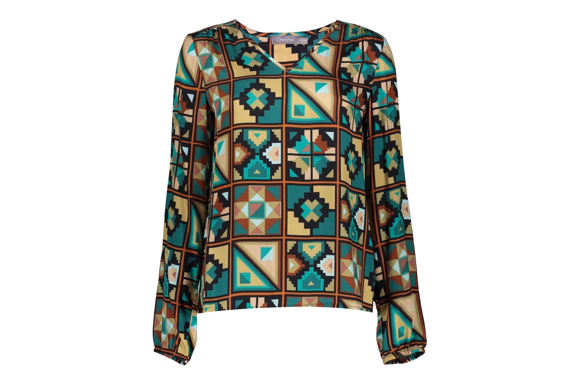 Geisha blouse 33663-20. Dit rechtvallend model is voorzien van een v-hals en heeft lange mouwen afgewerkt met een elastische inzet. Deze multi colour blouse van Geisha is bewerkt met een grafische print in verschillende kleuren.