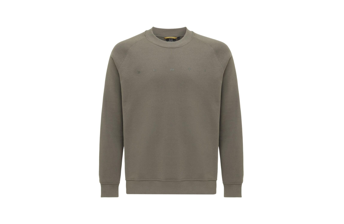 Genti Basic logo sweater 144 Brown. Dit regular fit model heeft een ronde kraag en lange mouwen. Deze bruine sweater van Genti is afgewerkt met ribboorden.