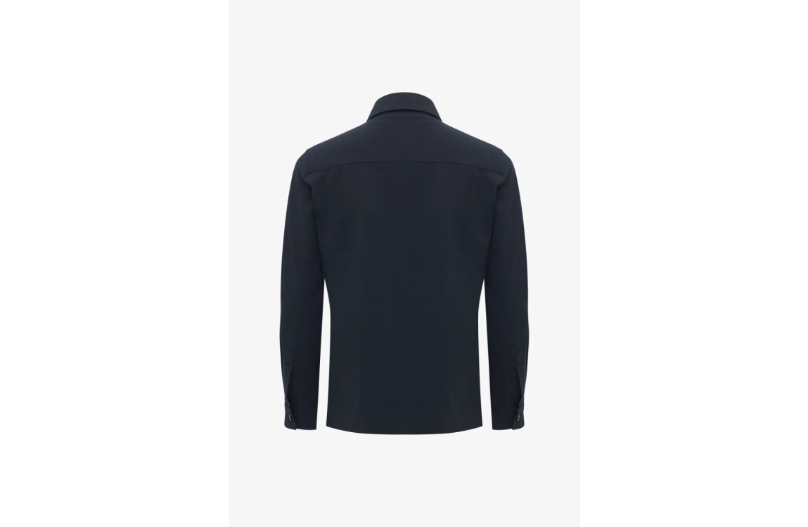 Genti Oaks shirt jack zip S4305-1948. Dit rechtvallend model heeft een kraag, lange mouwen en sluit door middel van een rits. Dit donkerblauwe overshirt/overjack van Genti is voorzien van klepzakken op het voorpand.