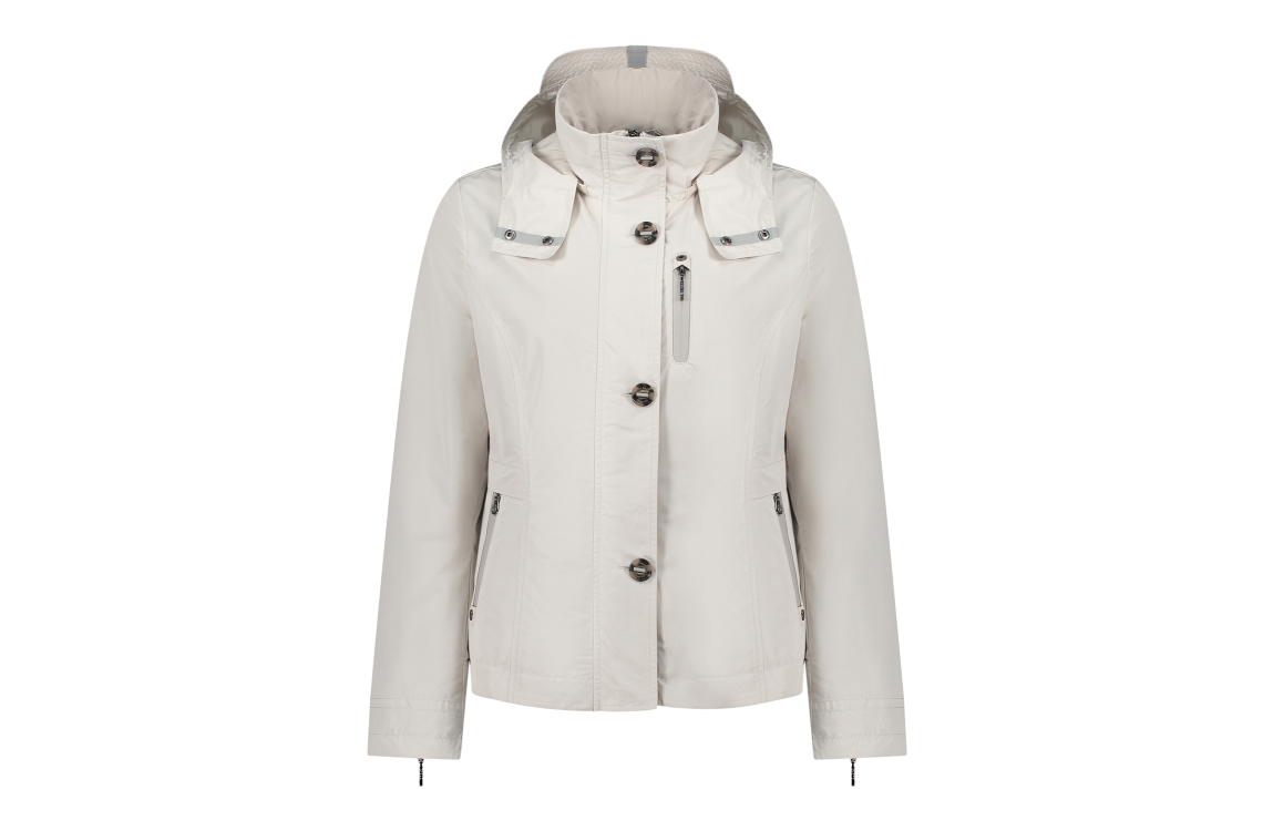Gil Bret jas 91235200 9000. Dit regular fit model heeft een opstaande kraag met afneembare capuchon en lange mouwen. Deze lichtgrijze jas van Gil Bret sluit aan de voorzijde door middel van knopen met ritssluiting en is voorzien van drie ritszakken. Het model is afgewerkt met het merkembleem op de linkermouw en beschikt over een stormflap aan de achterzijde.