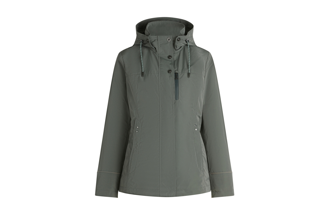 Gil Bret jas 91675200 9086. Dit regular fit model heeft een opstaande kraag met afneembare capuchon en lange mouwen. Deze groene jas van Gil Bret sluit aan de voorzijde door middel van knopen met ritssluiting en is voorzien van drie ritszakken.