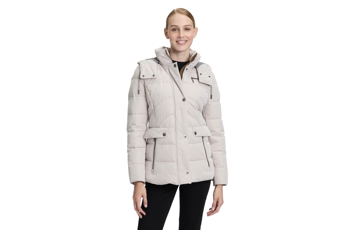 Gil Bret winterjas 906662009300.Dit aangesloten model heeft een (afneembare) capuchon, lange mouwen en sluit door middel van een rits en knopen. Deze beige kleurige jas van Gil Bret is voorzien van verschillende ritszakken en afgewerkt met zilveren details. De jas is gevoerd en gemaakt van een doorgestikt materiaal.