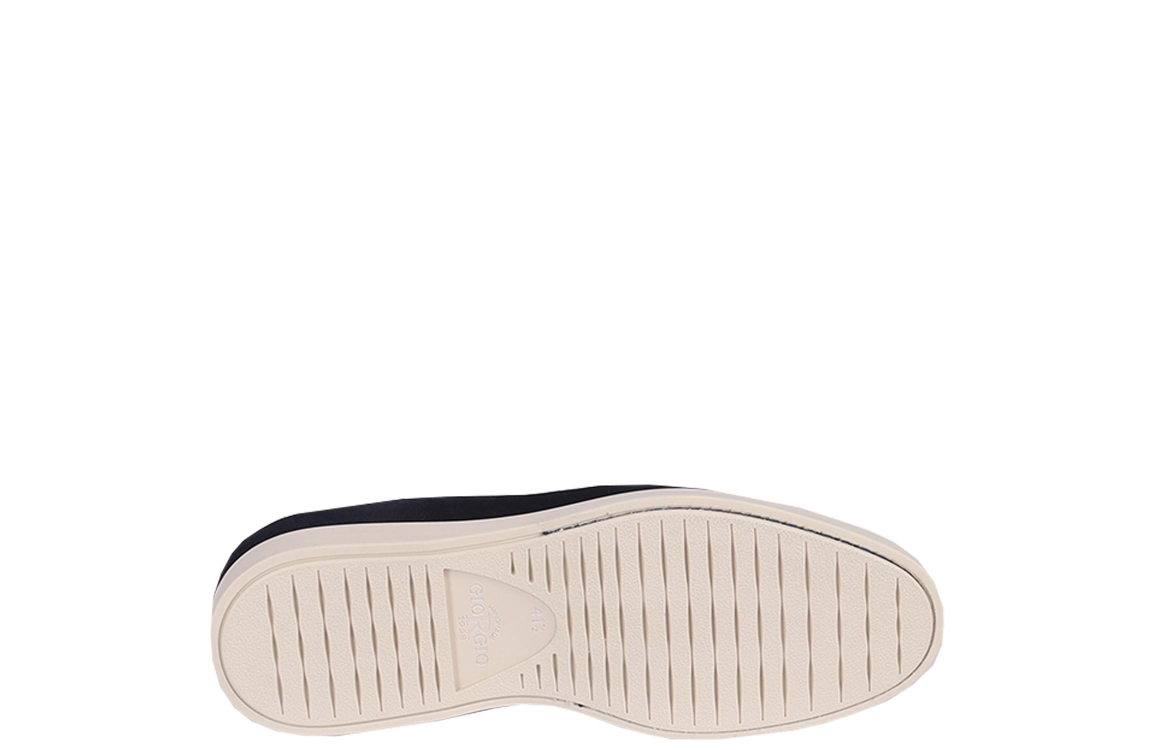 Giorgio light Boy 56402 188. Deze donkerblauwe instappers van Giorgio hebben een rubberen zool en een lederen voering. Het model is uitgevoerd in suédestof en is handgemaakt in Italië.
