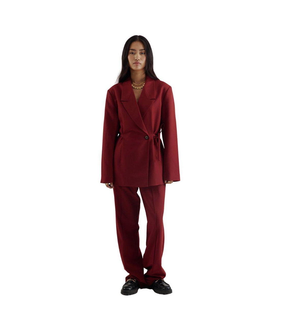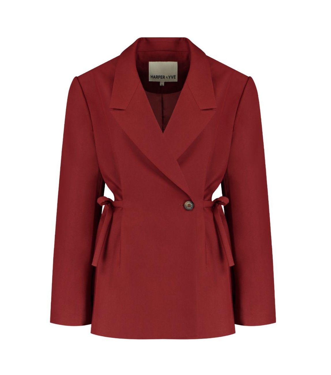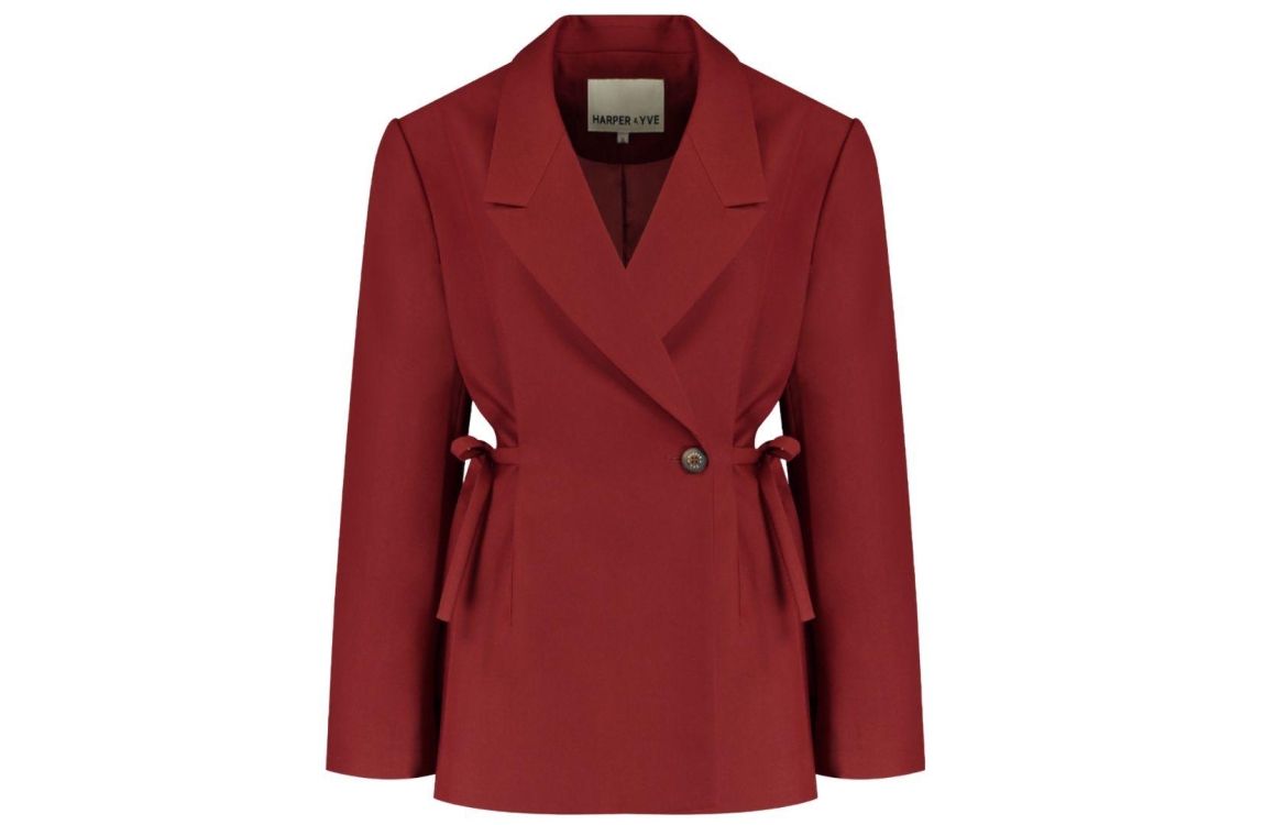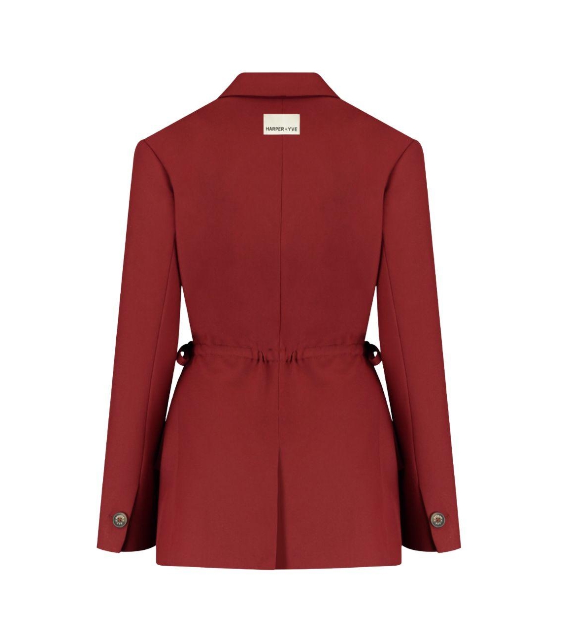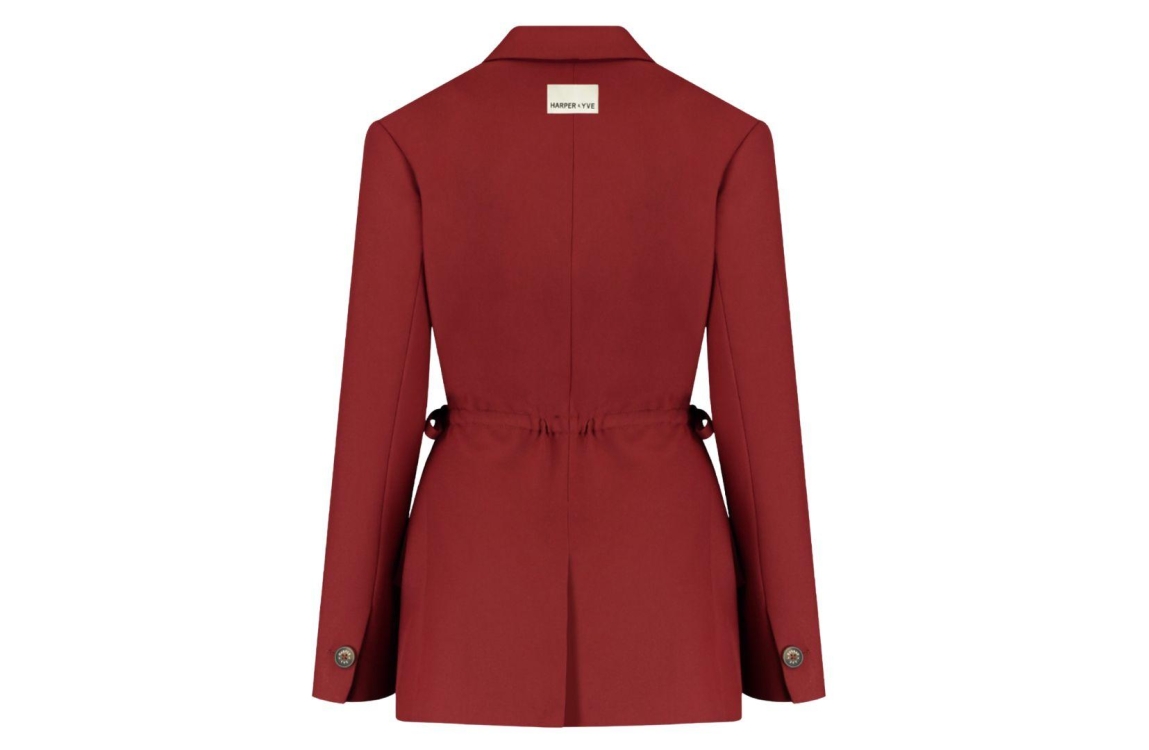 Harper and Yve blazer Anina AW25N213 317. Dit rechtvallende model heeft een reverskraag en lange mouwen. Deze bordeauxrode blazer van Harper and Yve sluit aan de voorzijde met een knoopsluiting en is voorzien van verstelbare strikjes aan de zijkanten. Het model is afgewerkt met het merkembleem op het achterpand.