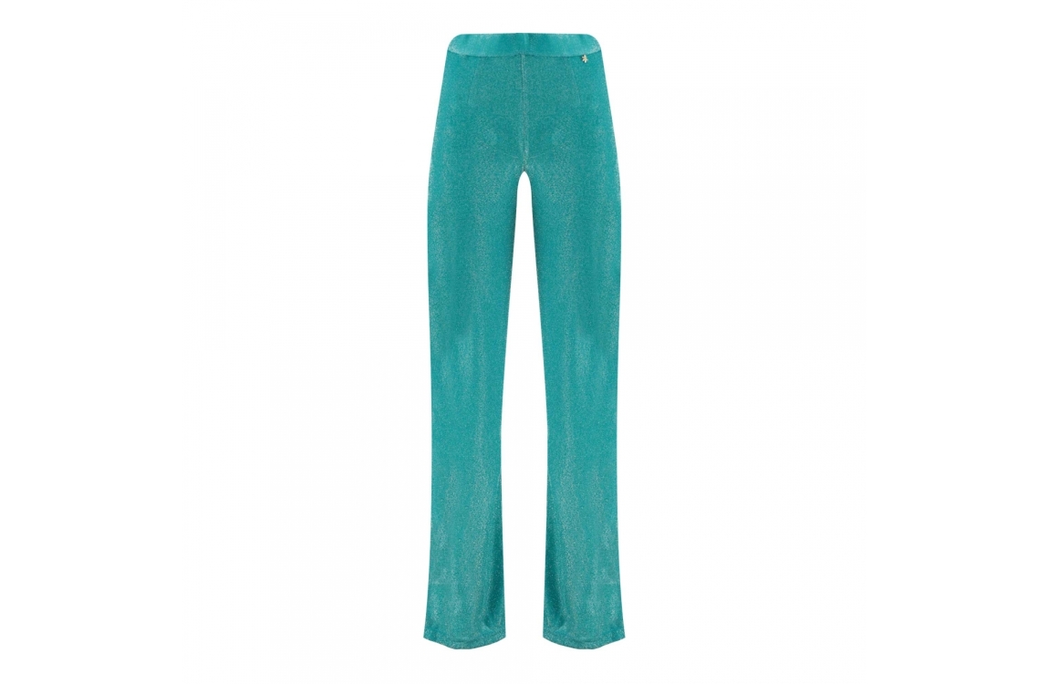 Harper and Yve glitter-pa broek. Dit wijdvallende model sluit door middel van een rits. Deze blauwe broek van Harper en Yve is bewerkt met glitters.