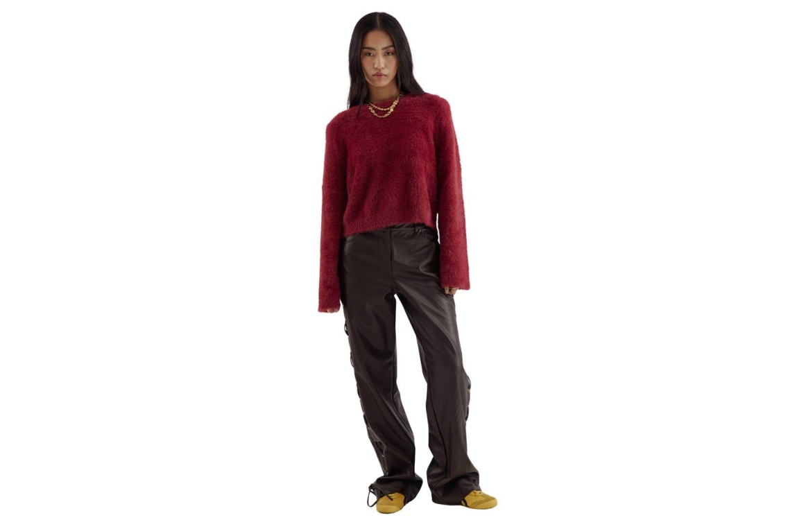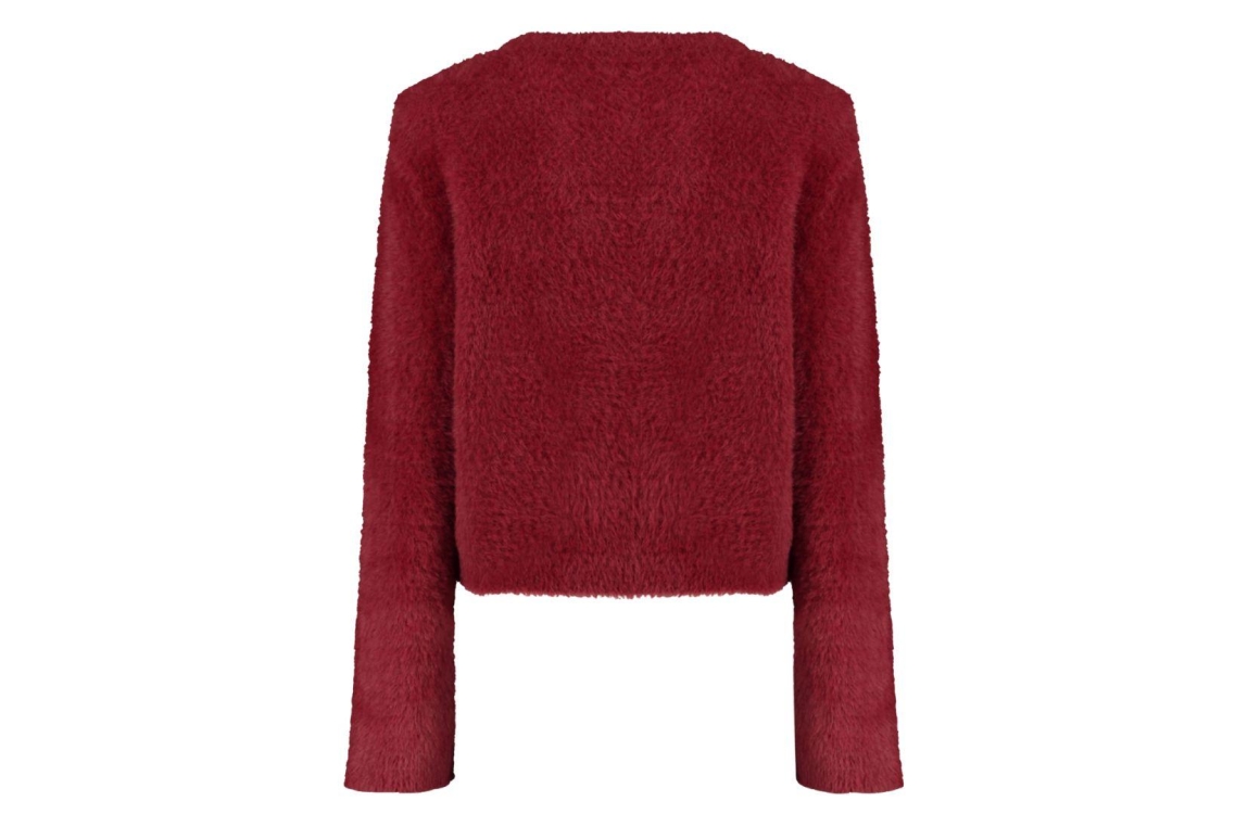 Harper and Yve trui NINA-JU AW25W502 319. Dit rechtvallende model heeft een ronde halslijn en lange mouwen. Deze bordeauxrode trui van Harper and Yve is uitgevoerd in fluffy kwaliteit en is voorzien van schoudervulling.