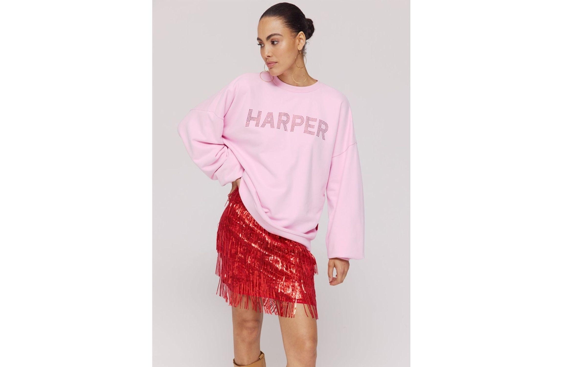 Harper and Yve RHINE-SW 621 cotton candy. Dit soepelvallende model is voorzien van een ronde hals en lange mouwen. Deze roze sweater van Harper and Yve is aan de voorzijde bewerkt met roze strass-steentjes.